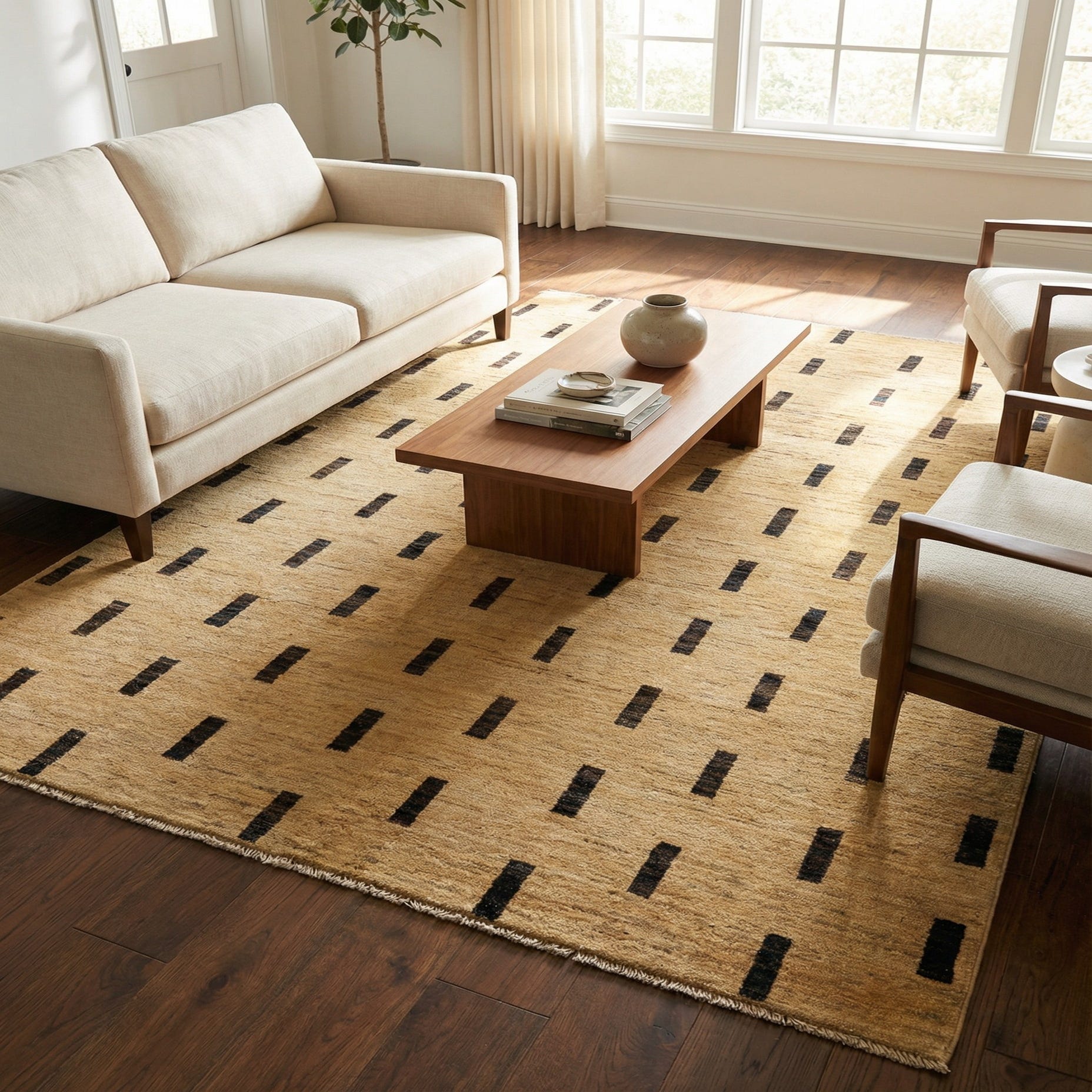 Primary color is Cream. Colors in this rug include: Cream, Black.