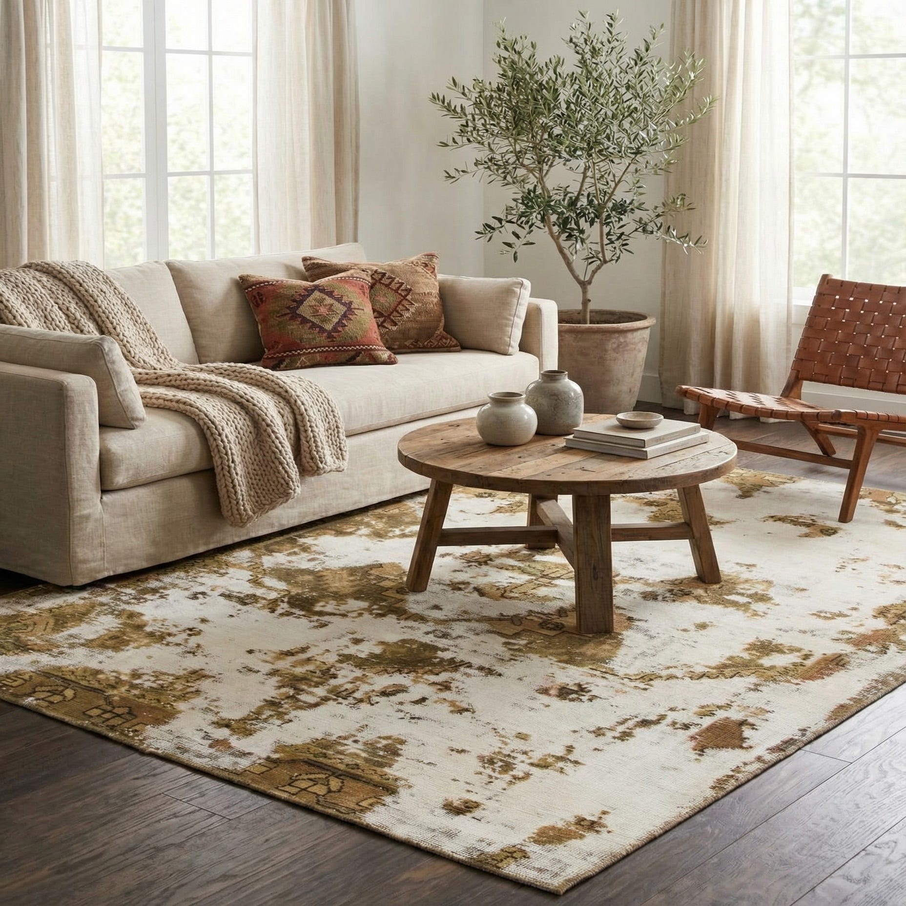 Primary color is Cream. Colors in this rug include: Cream, Brown, Light Brown, Beige, Olive.