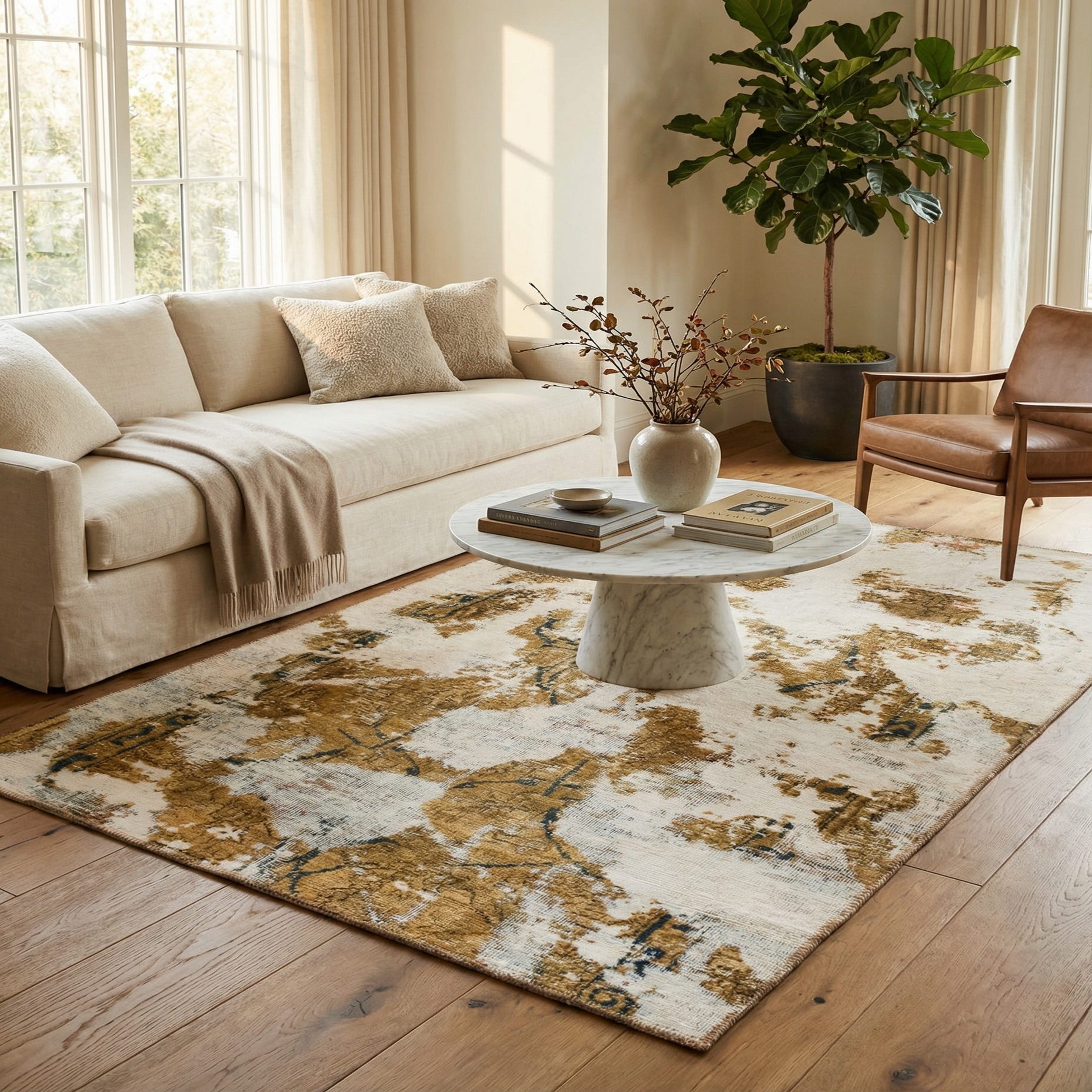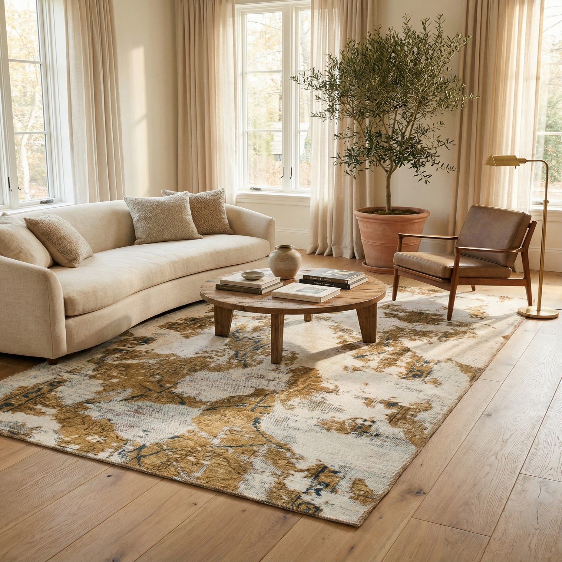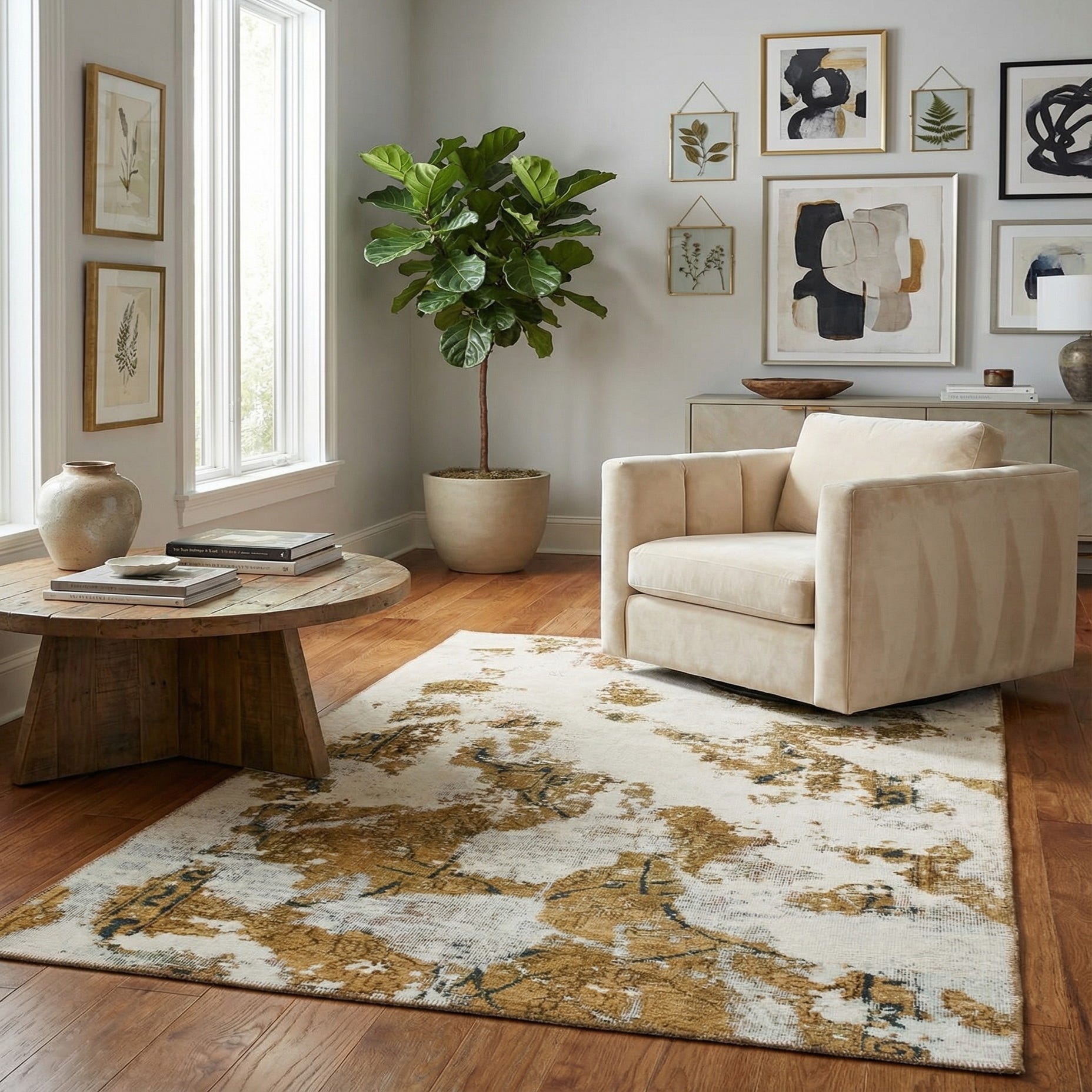 Primary color is Cream. Colors in this rug include: Cream, Beige, Brown, Olive, Hunter Green.