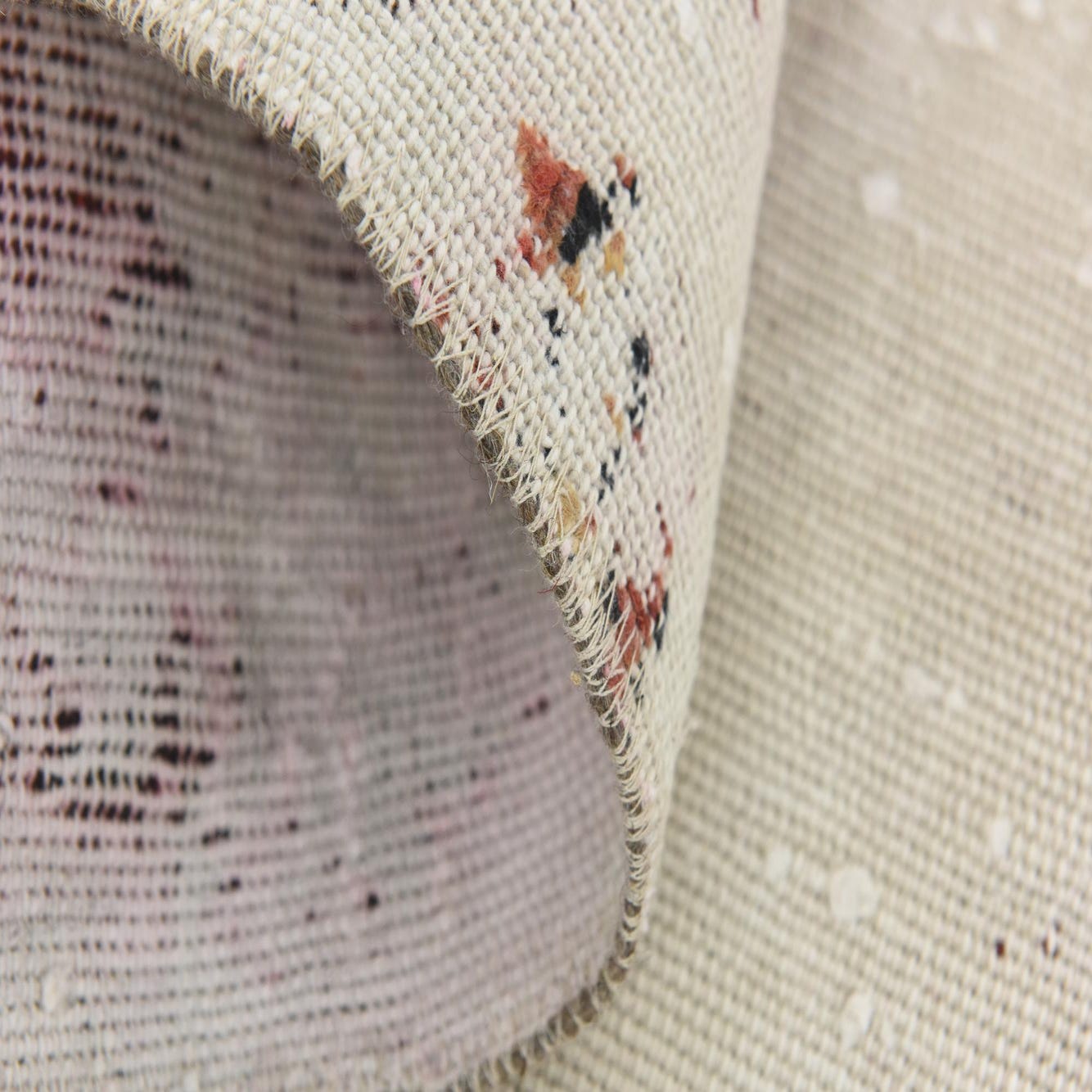 Primary color is Cream. Colors in this rug include: Cream, Black, Rust Red, Terracotta, Navy Blue.