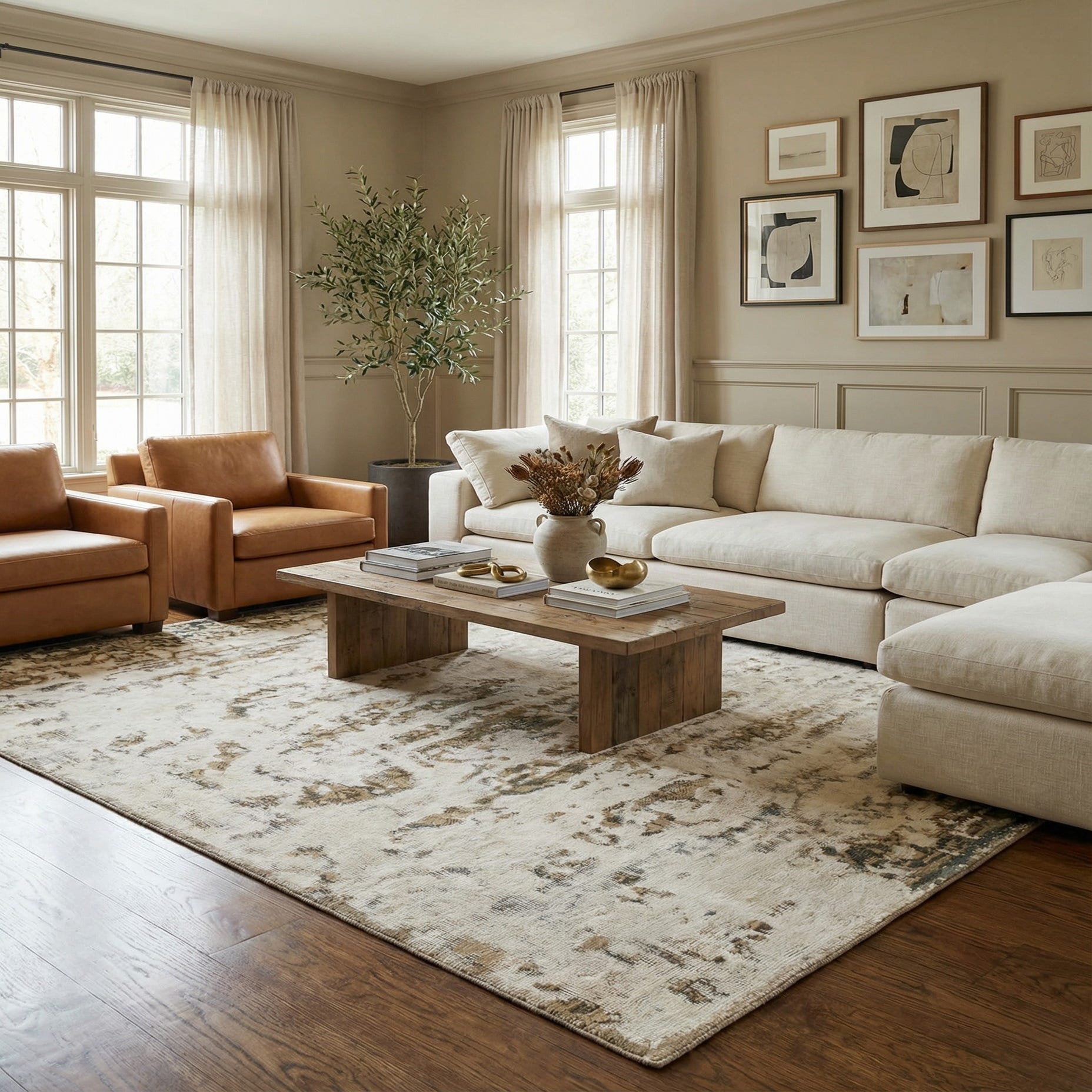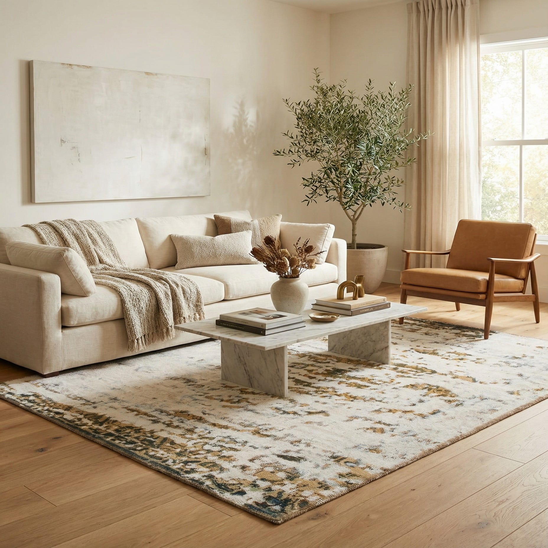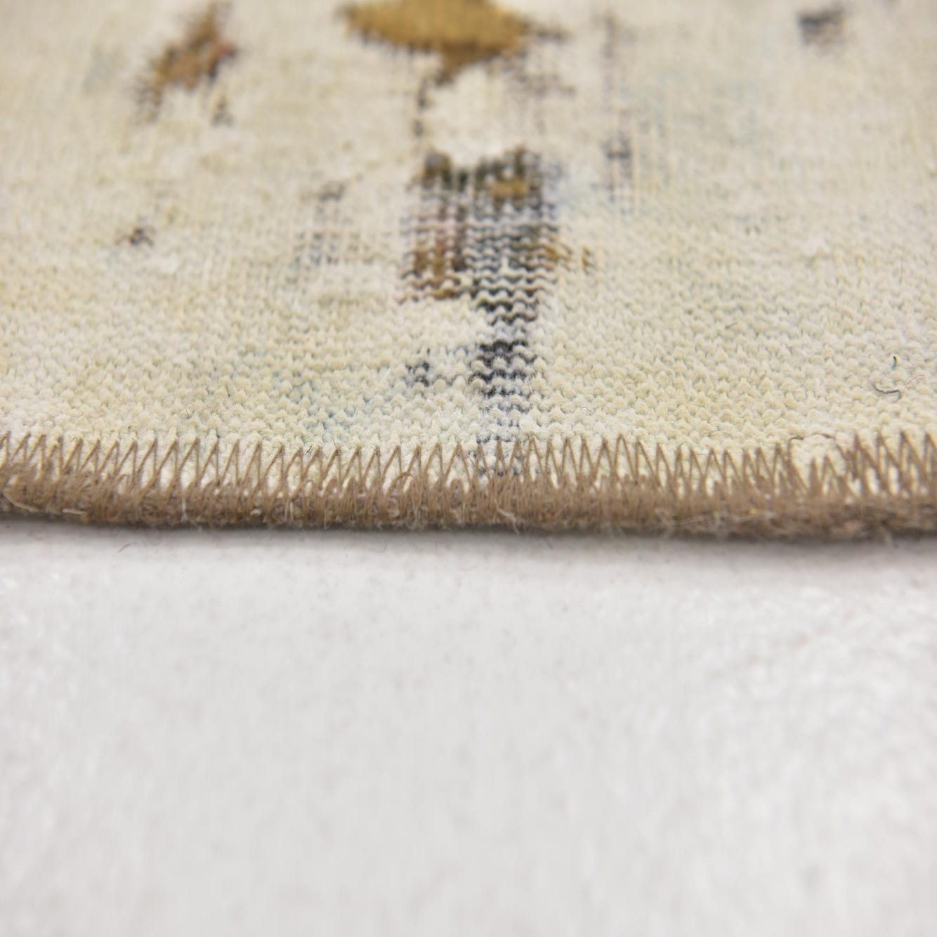 Primary color is Cream. Colors in this rug include: Cream, Brown, Green, Light Brown, Olive.