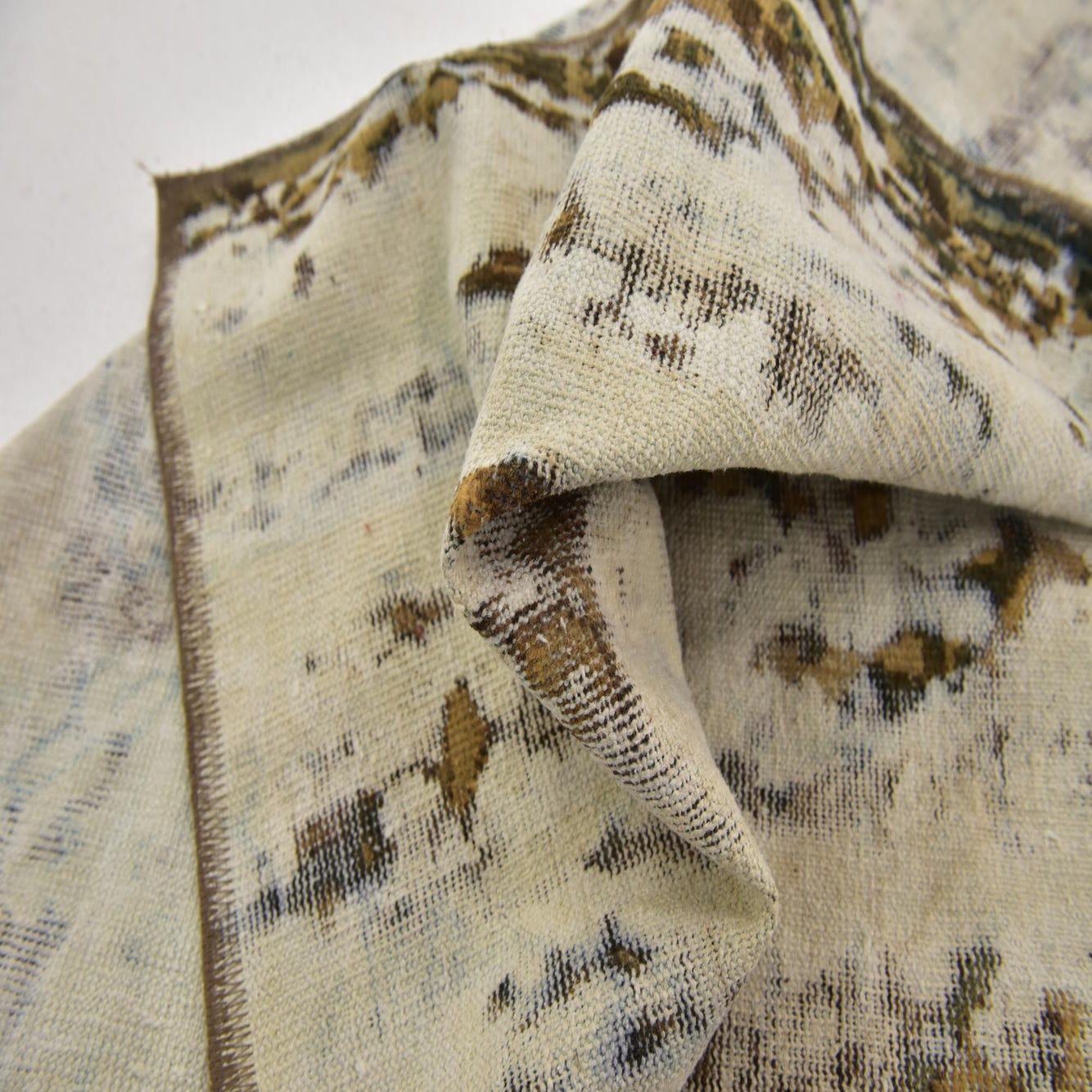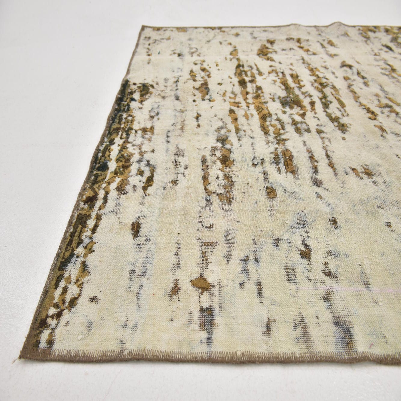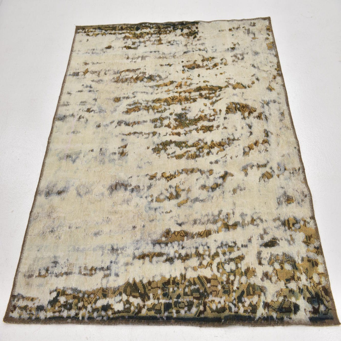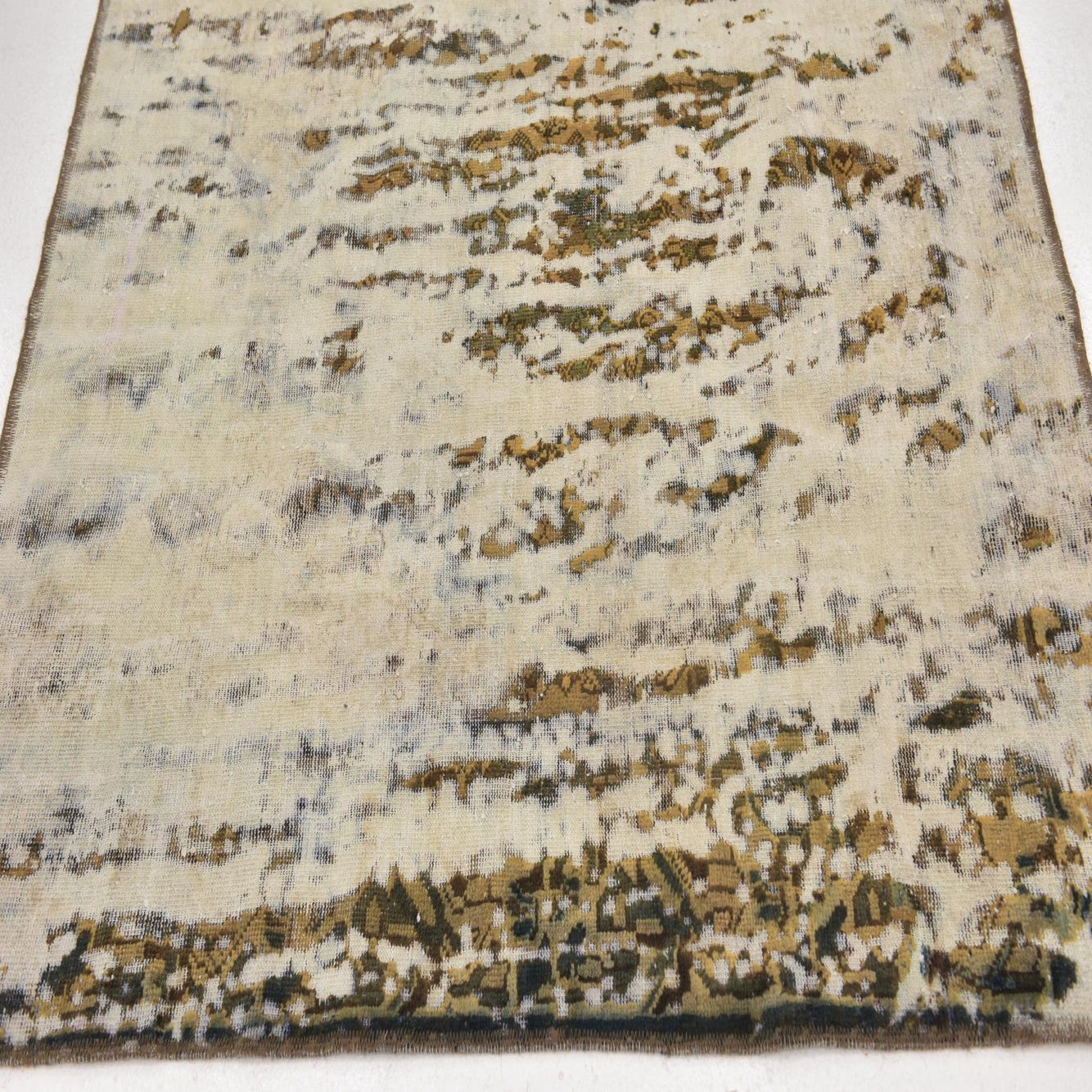 This Persian Ultra Vintage rug is an antique Persian Rug that has been washed, over-dyed, and then shaved down to a low pile. Look at the detail pictures to fully appreciate the uniqueness of this piece.