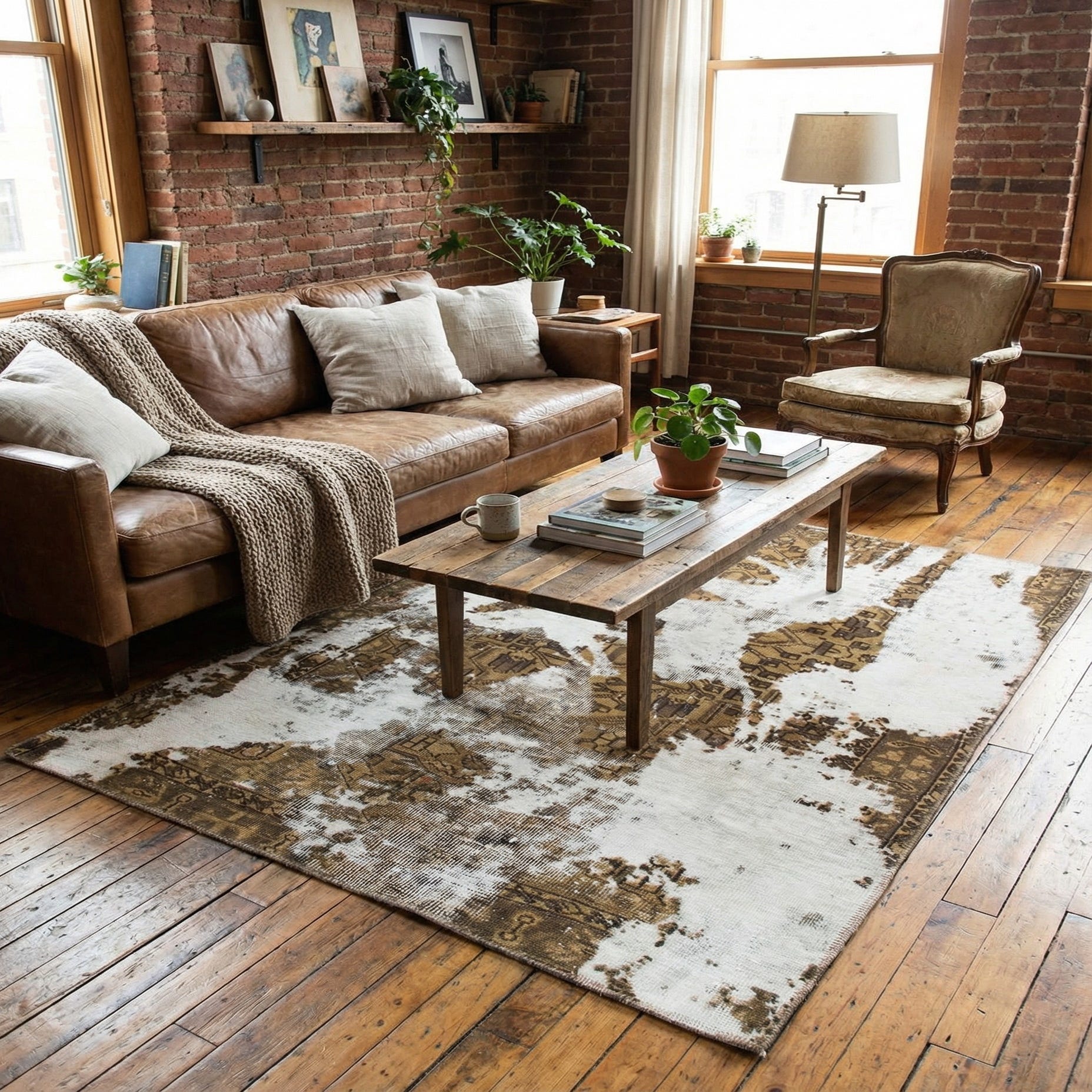 Primary color is Cream. Colors in this rug include: Cream, Brown, Light Brown.