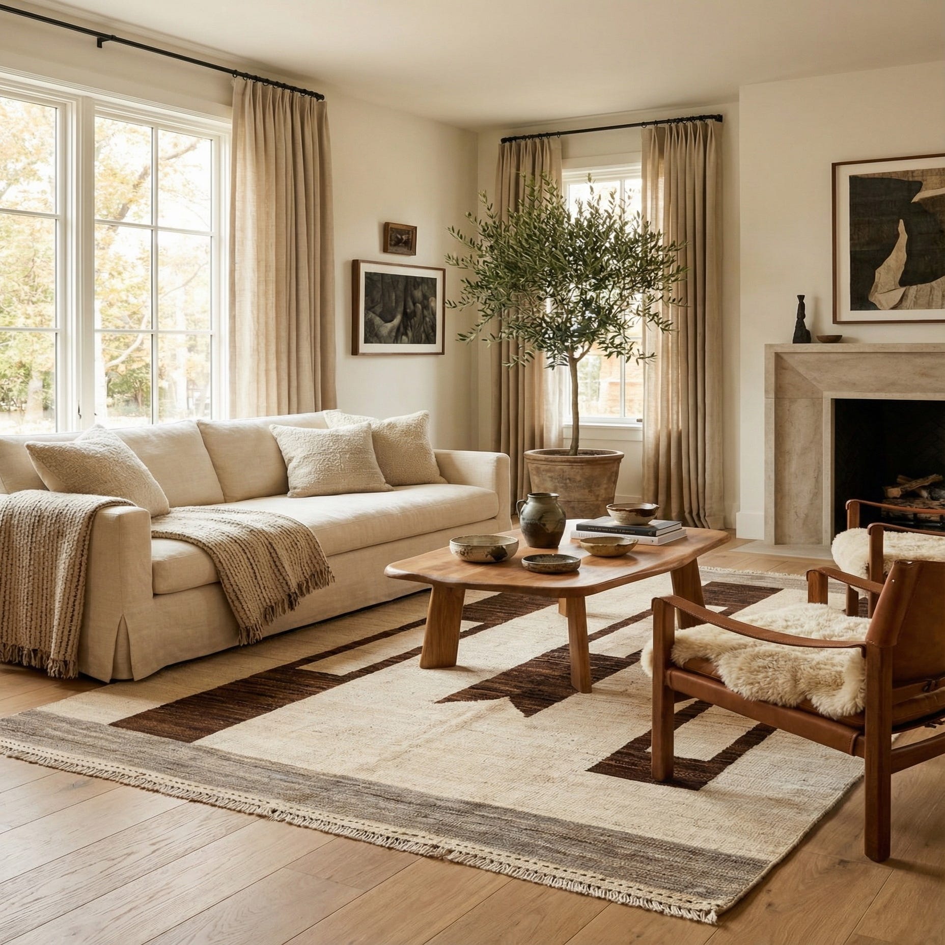 Primary color is Cream. Colors in this rug include: Cream, Brown, Light Brown.