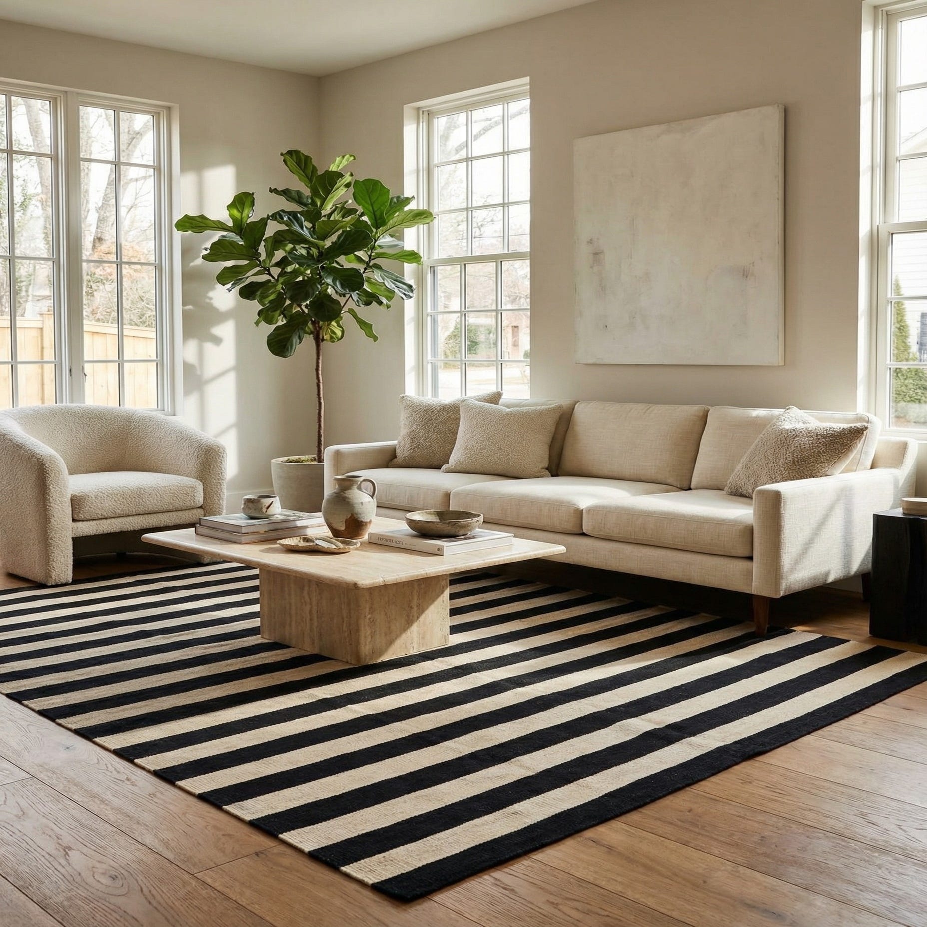 Primary color is Cream. Colors in this rug include: Cream, Black.