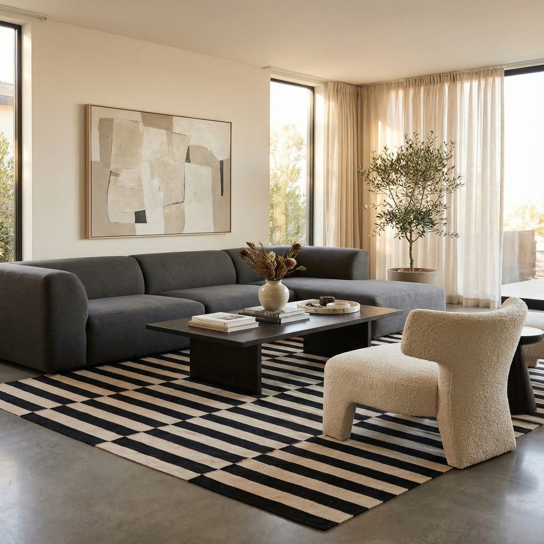 Primary color is Cream. Colors in this rug include: Cream, Black.
