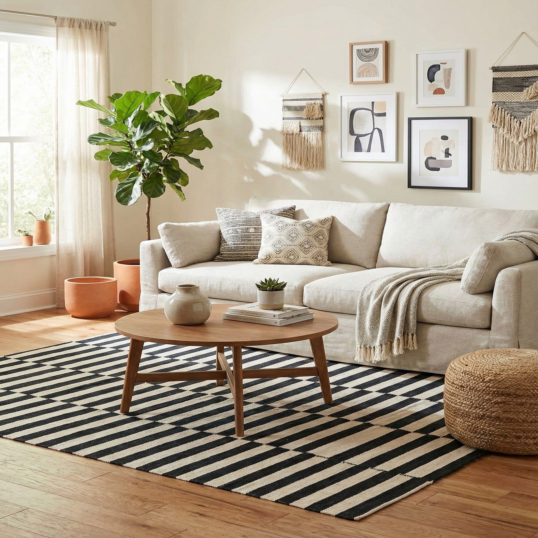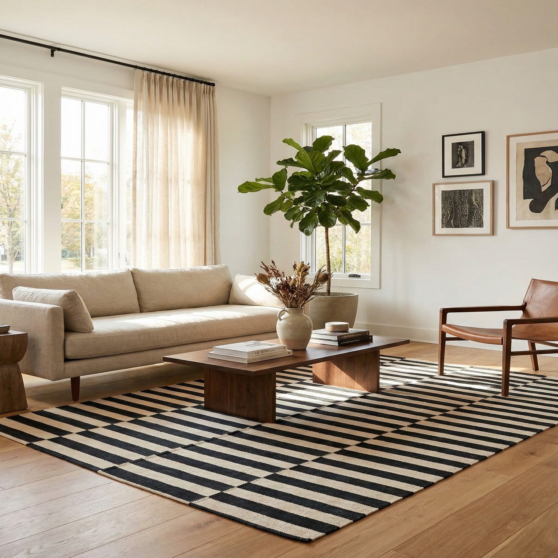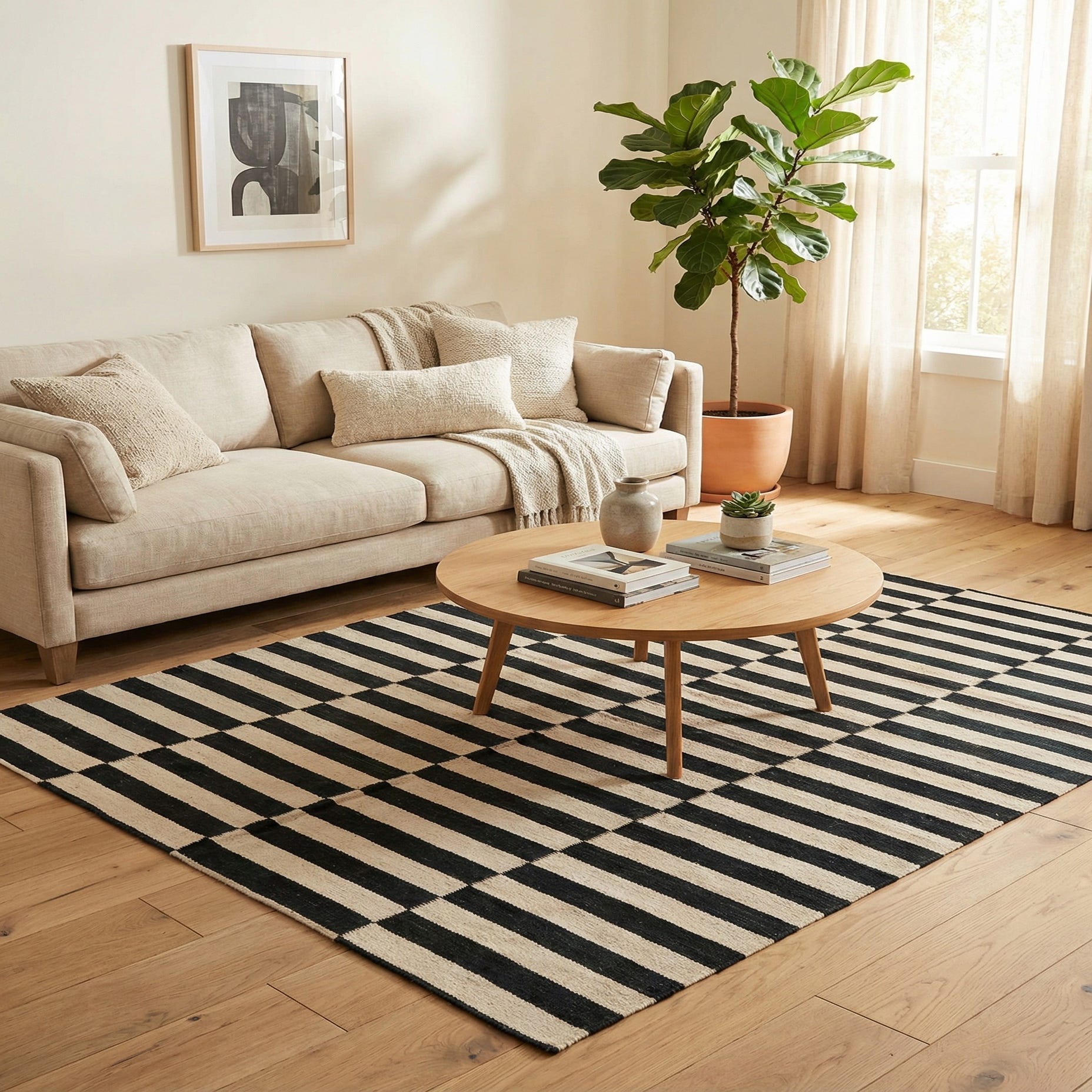 Primary color is Cream. Colors in this rug include: Cream, Black.