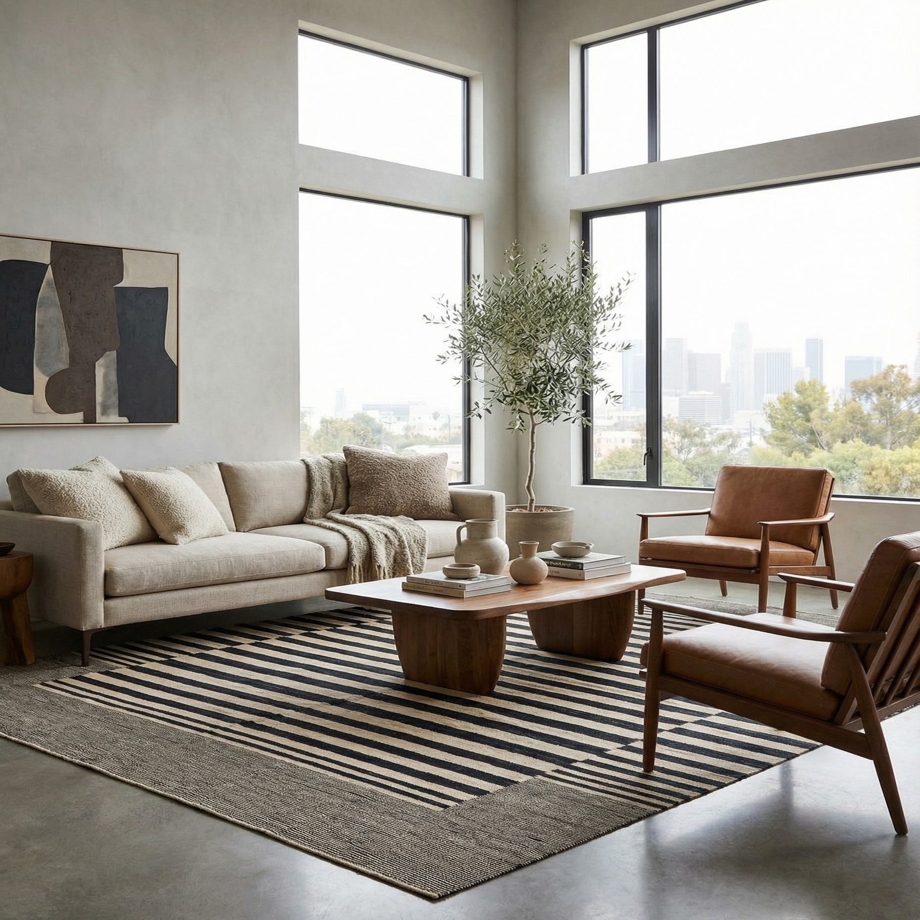 Primary color is Cream. Colors in this rug include: Cream, Black.