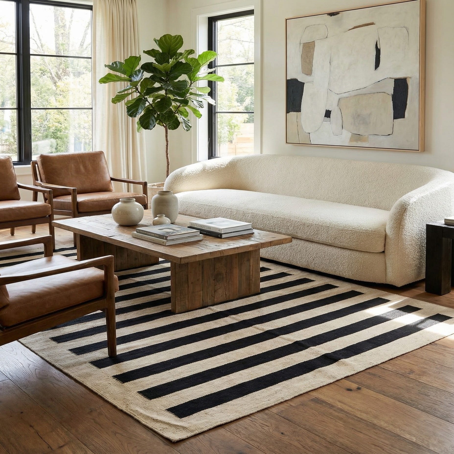 Primary color is Cream. Colors in this rug include: Cream, Black.