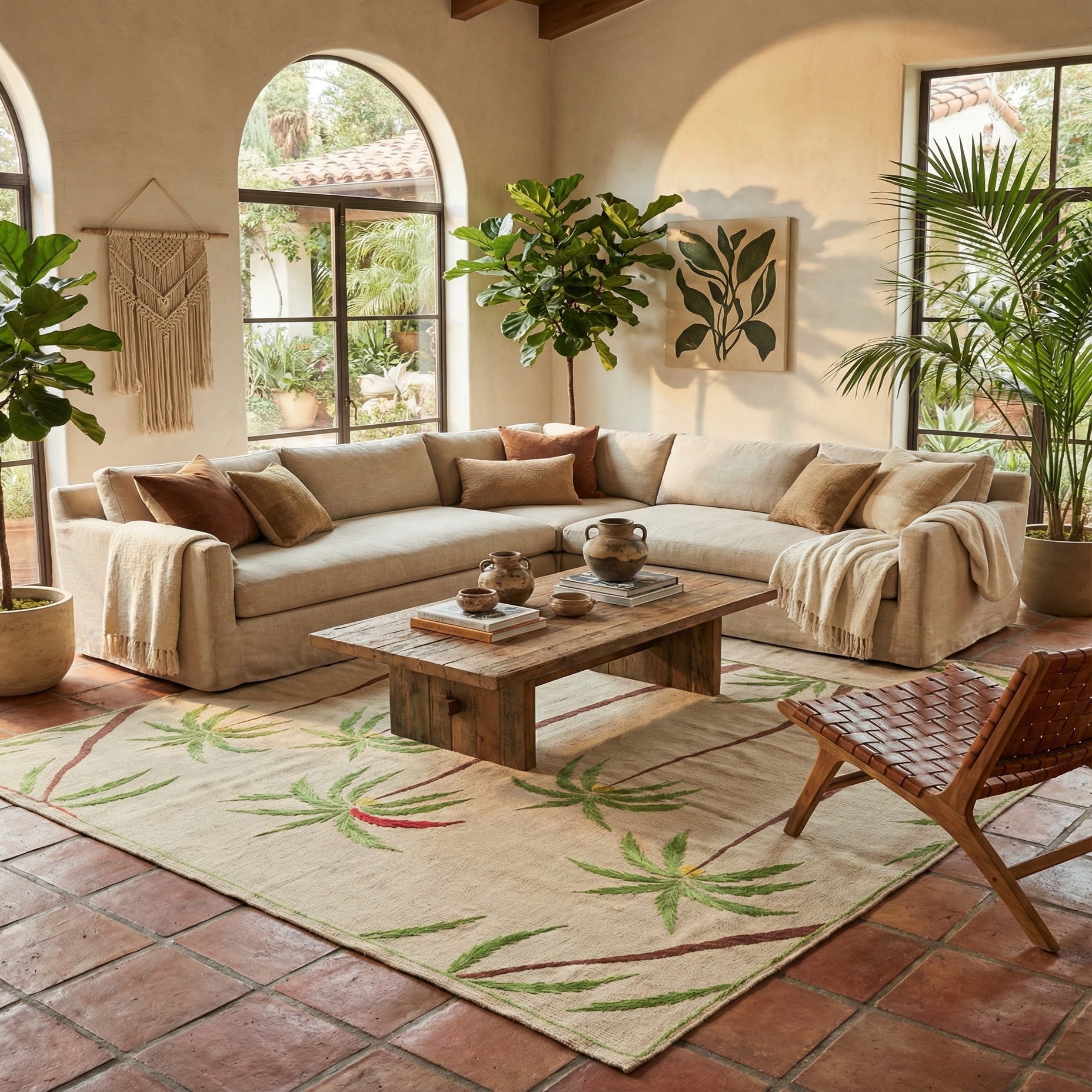 Primary color is Cream. Colors in this rug include: Cream, Brown, Green, Red, Olive.