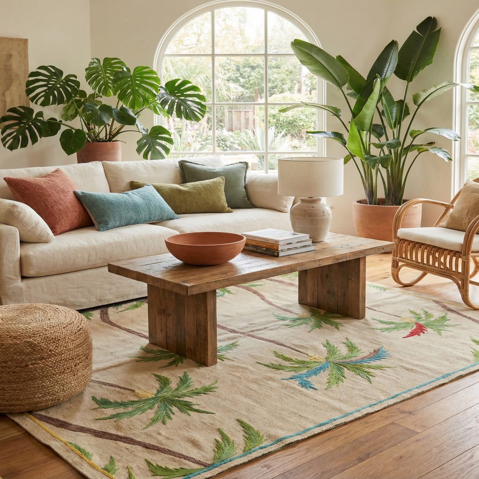 Primary color is Cream. Colors in this rug include: Cream, Olive, Blue, Yellow, Red.