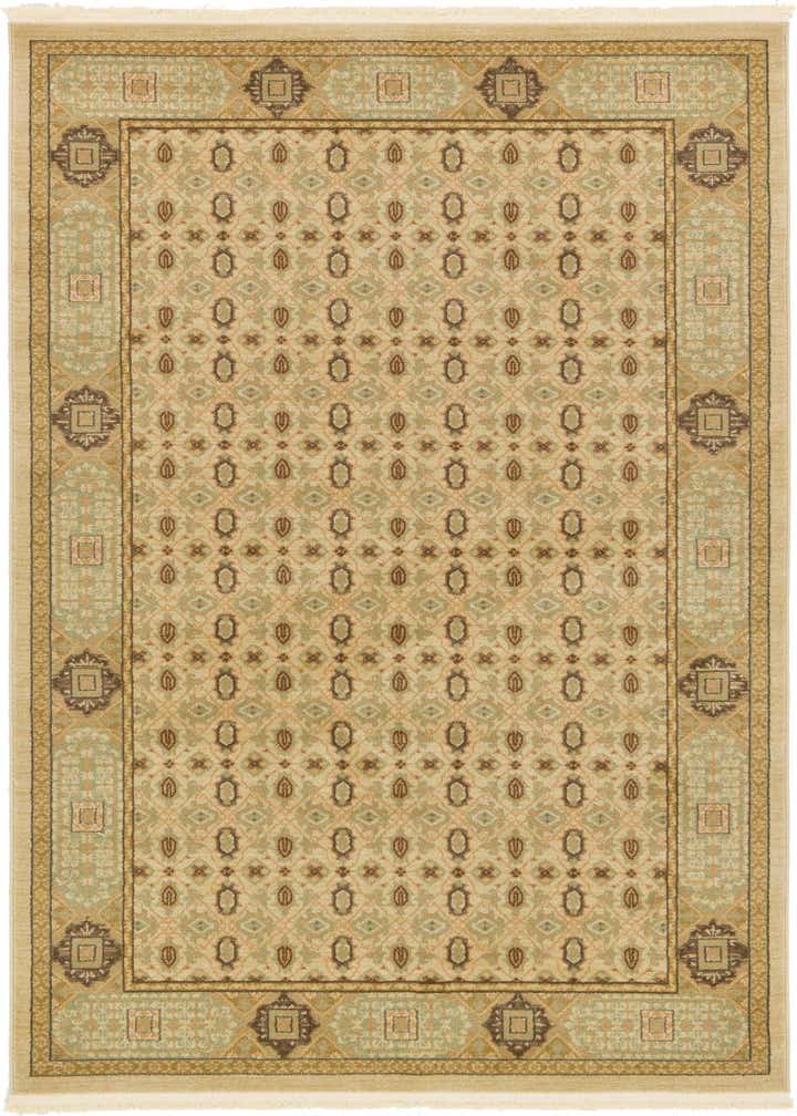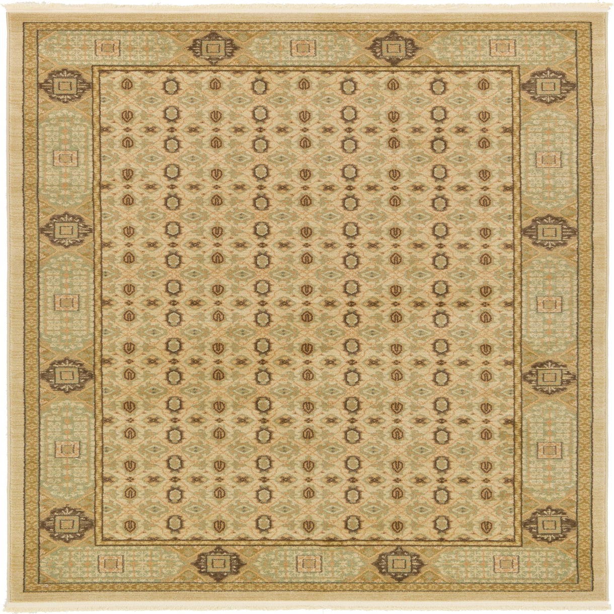 Primary color is Cream. Colors in this rug include: Cream, Candy, Light Green, Tan, Brown.