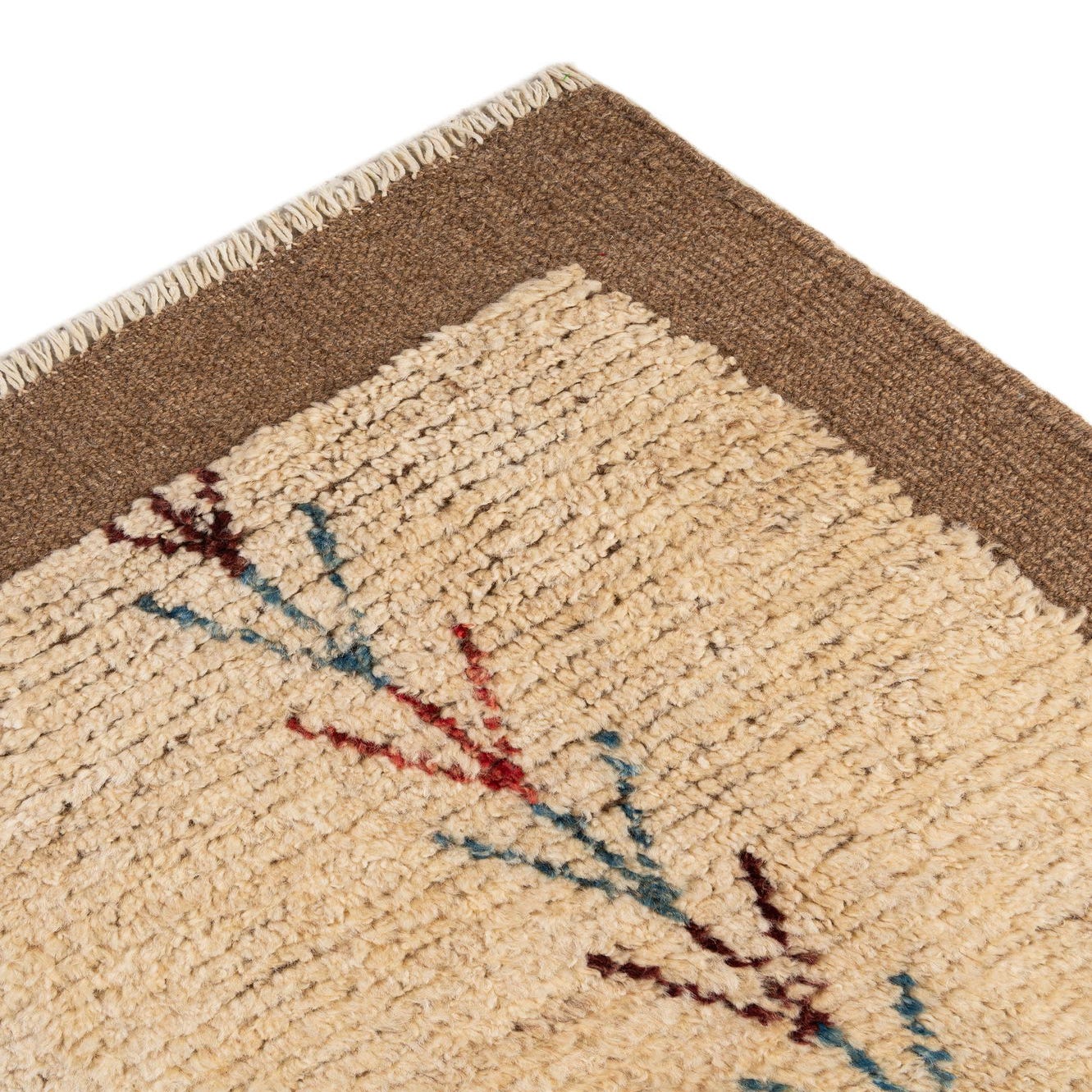 Primary color is Cream. Colors in this rug include: Cream, Blue, Brown, Red, Burgundy.