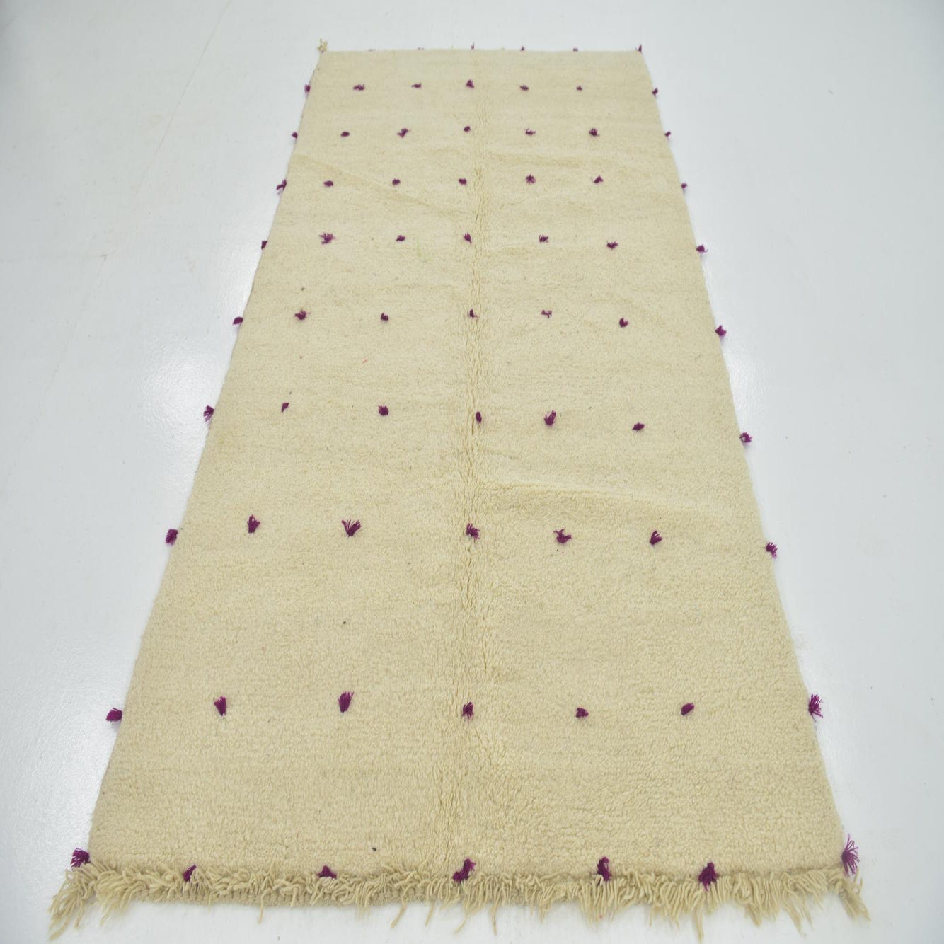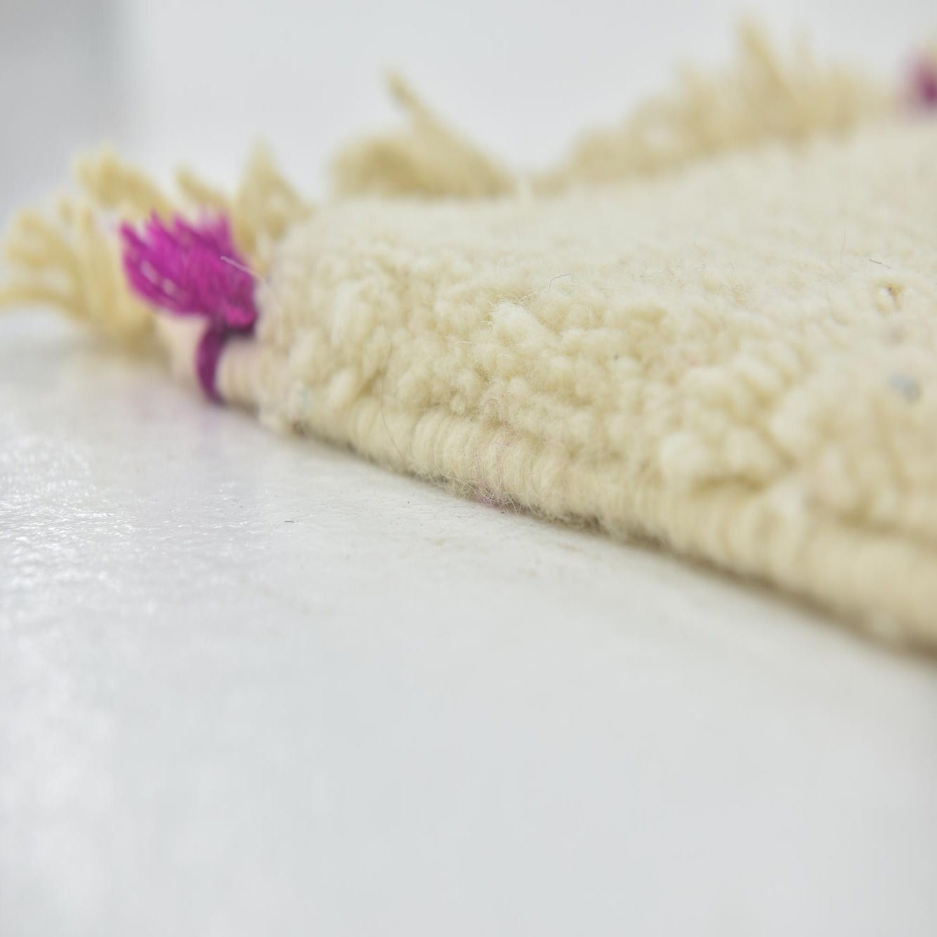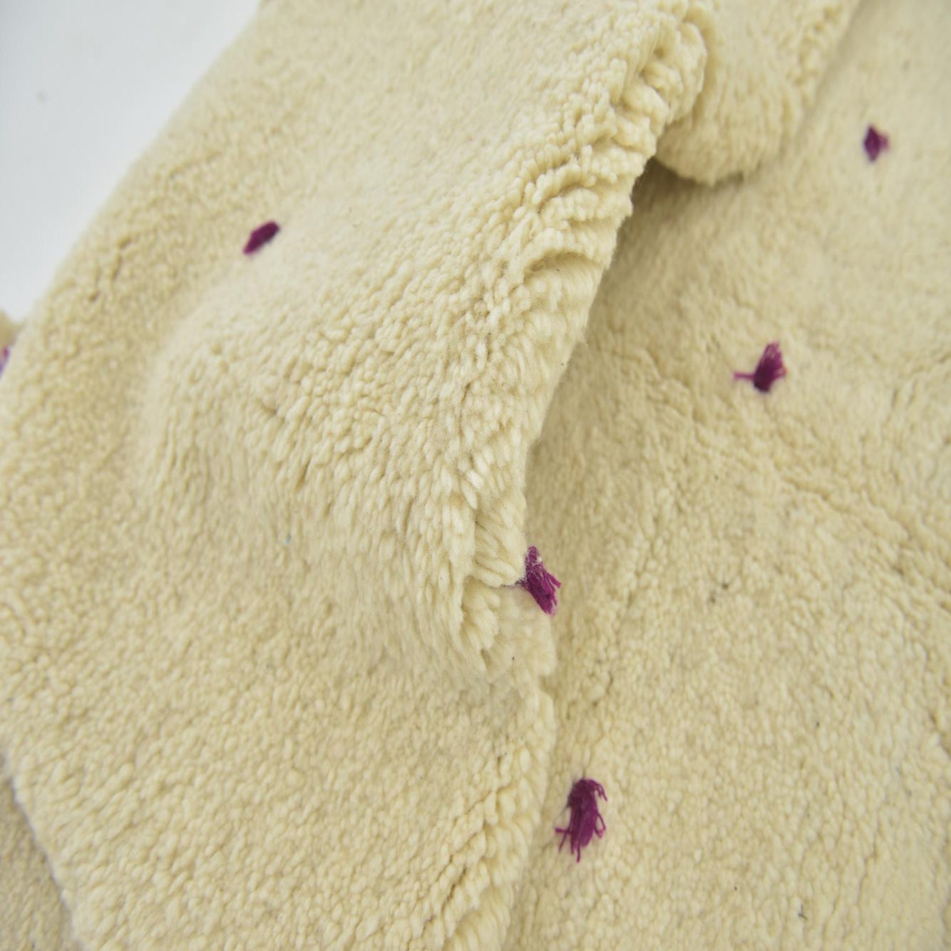 Primary color is Cream. Colors in this rug include: Cream, Violet.