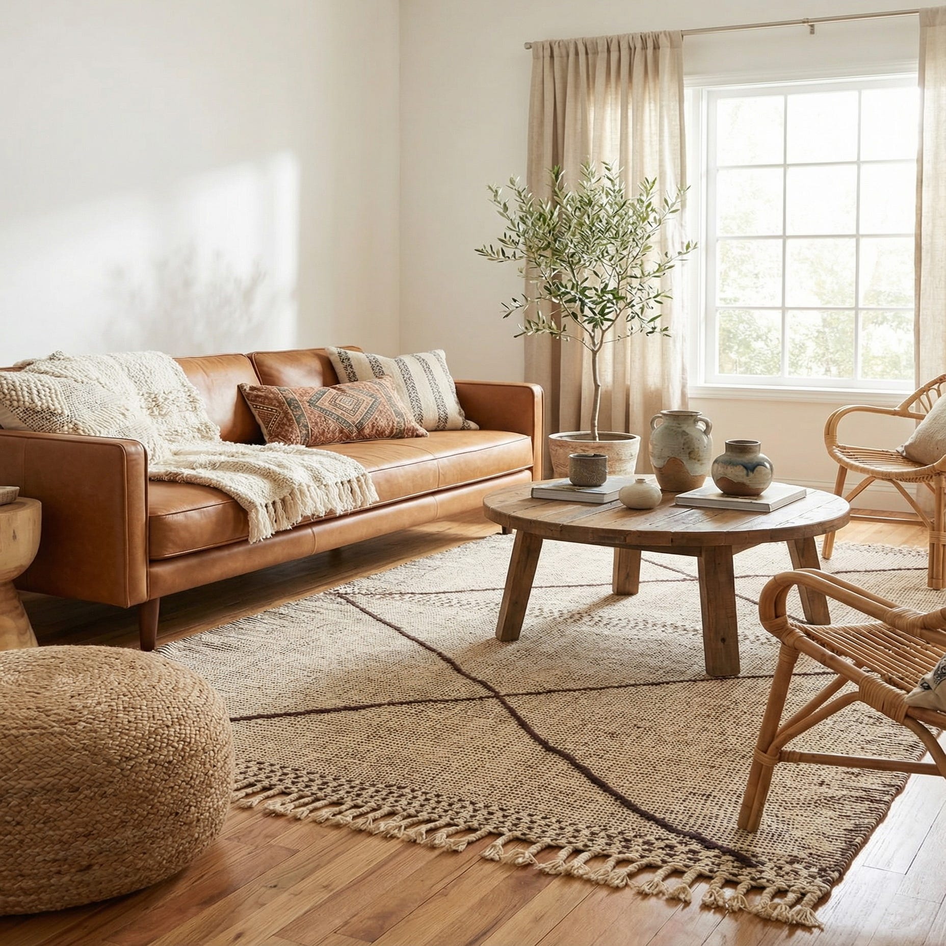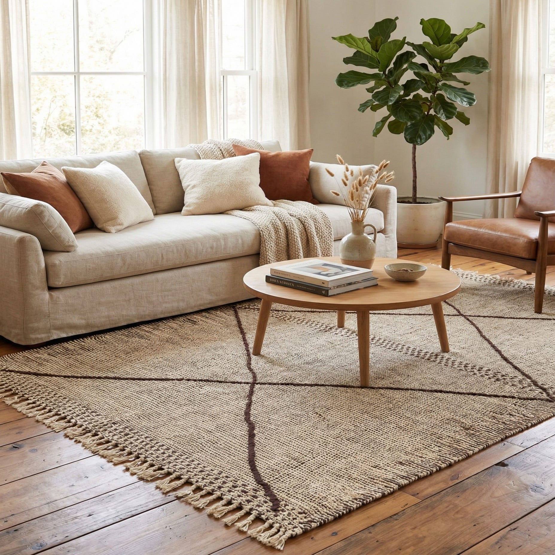 Primary color is Cream. Colors in this rug include: Cream, Brown, Ivory.