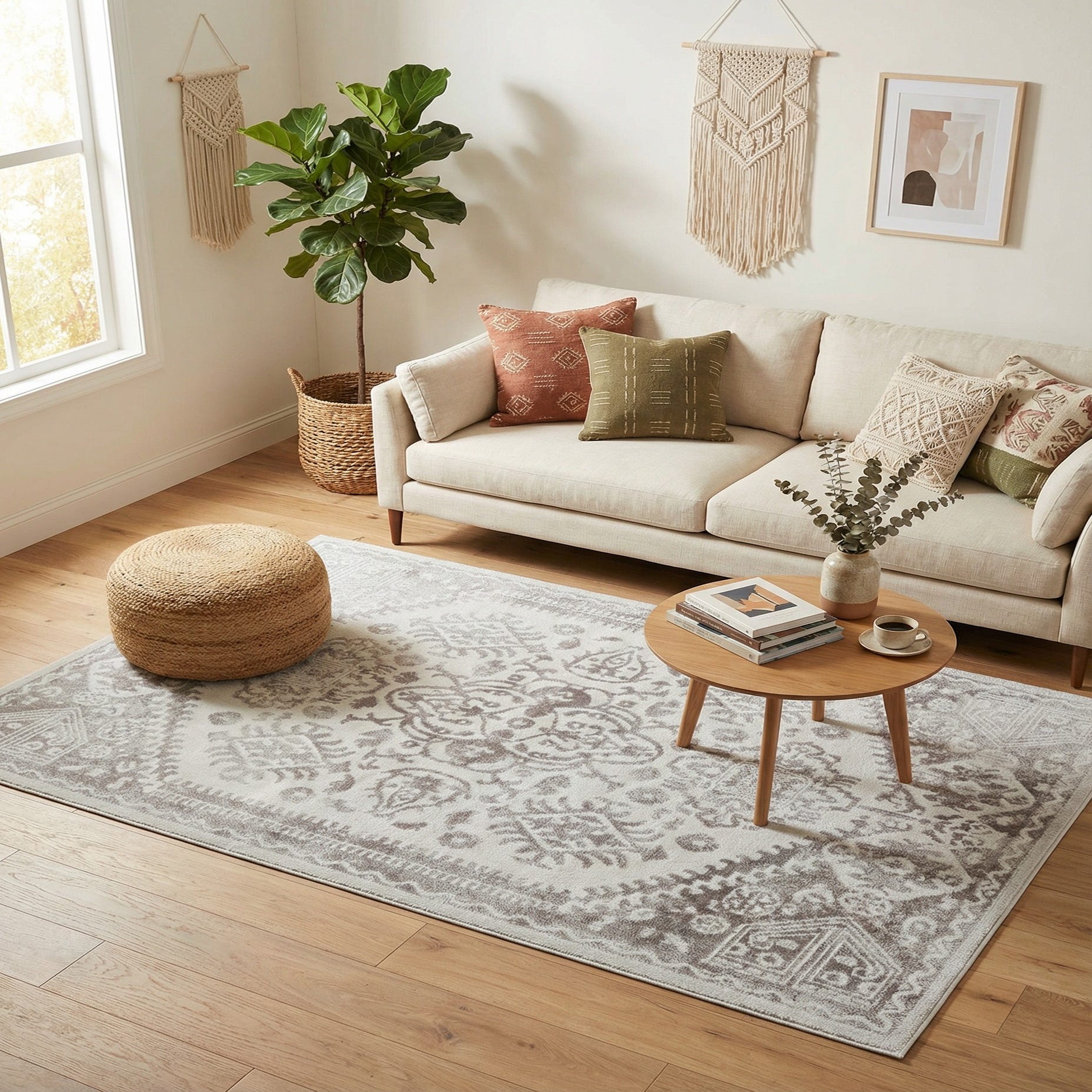 Primary color is Cream. Colors in this rug include: Cream, Ivory.