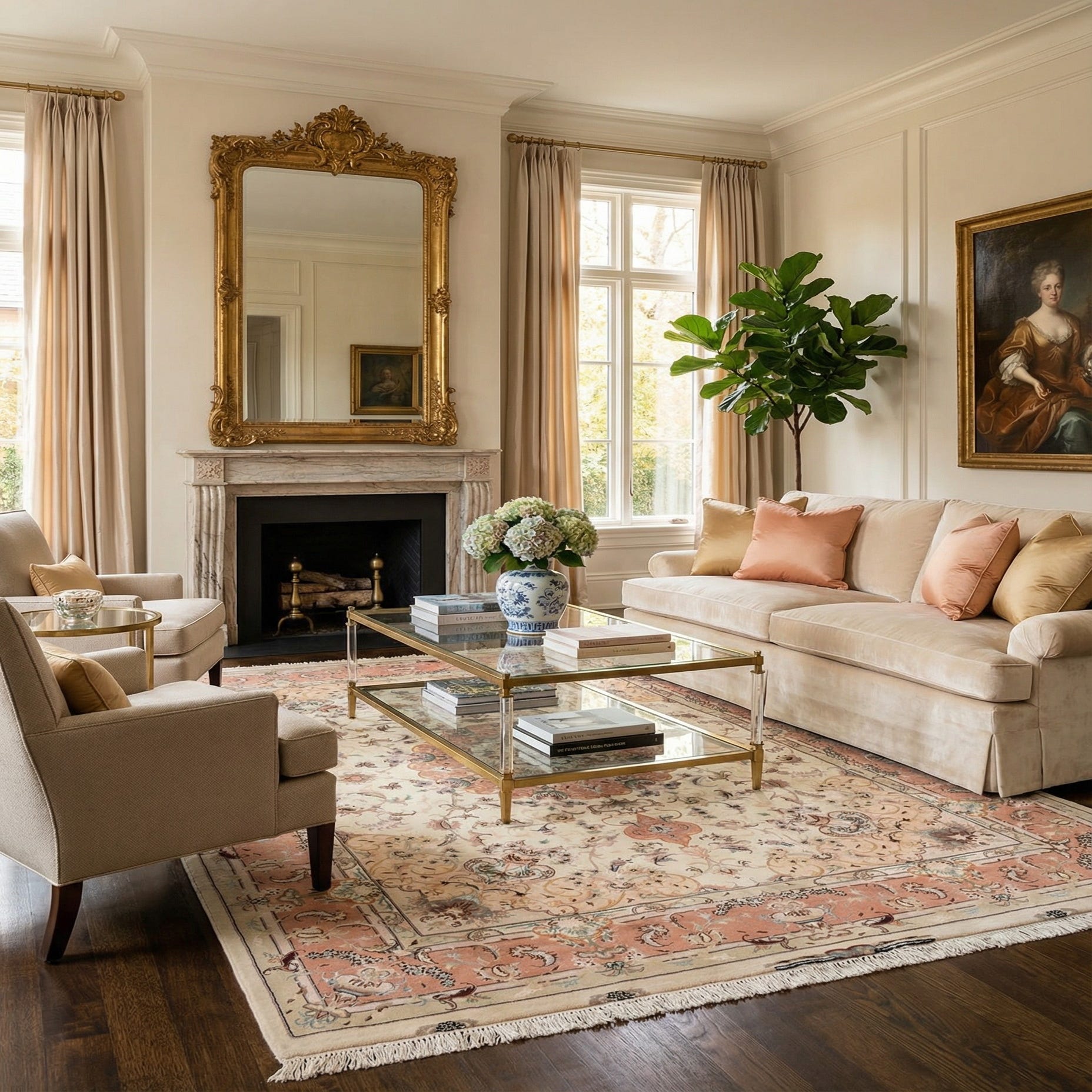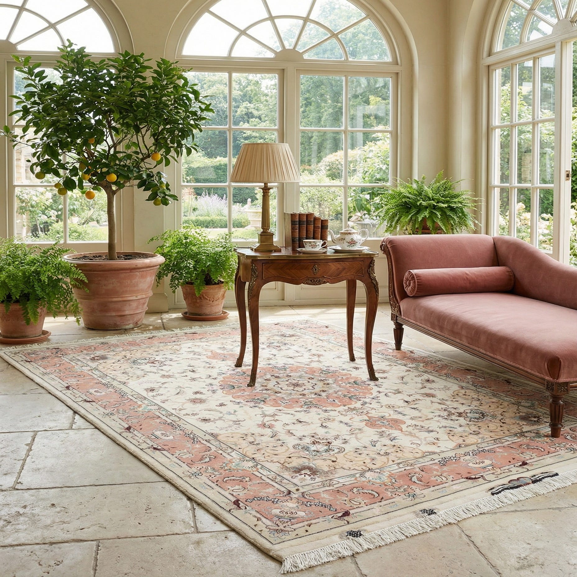Primary color is Cream. Colors in this rug include: Cream, Red, Black, Brown, Green, Light Blue, Blue, Beige.
