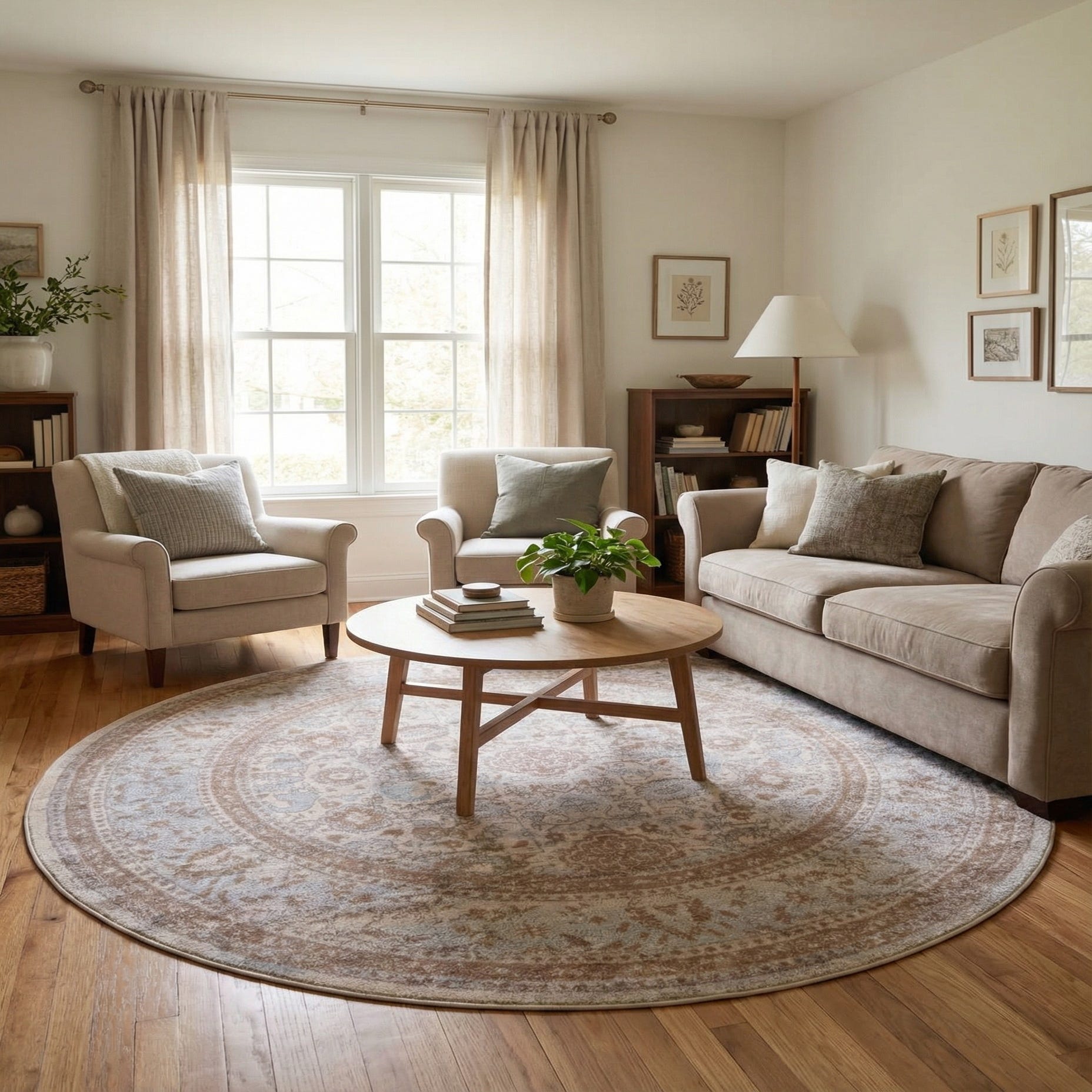 Primary color is Cream. Colors in this rug include: Cream, Beige, Light Blue.