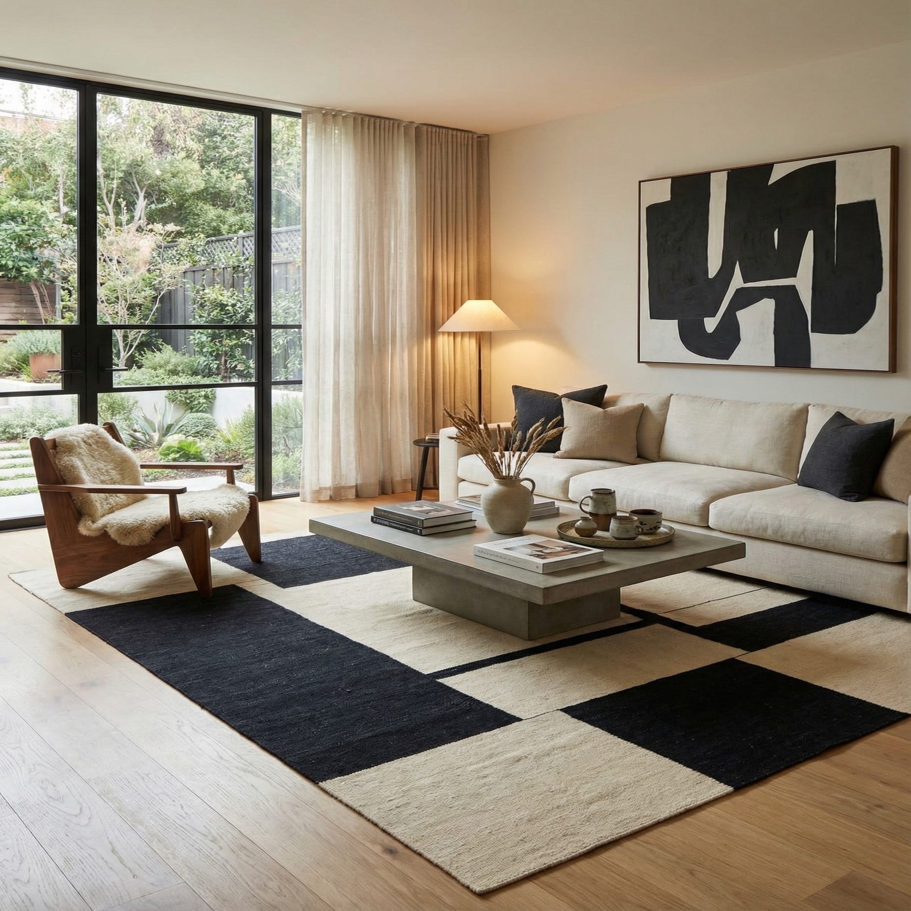 Primary color is Cream. Colors in this rug include: Cream, Black.