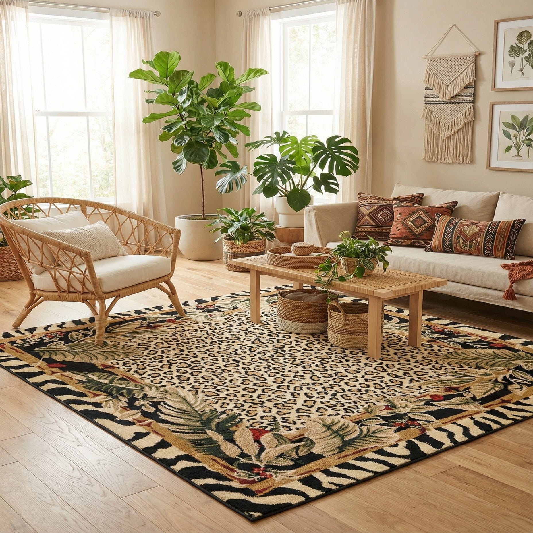 Primary color is Cream. Colors in this rug include: Cream, Black, Ivory, Red, Green, Burgundy, Olive, Tan.