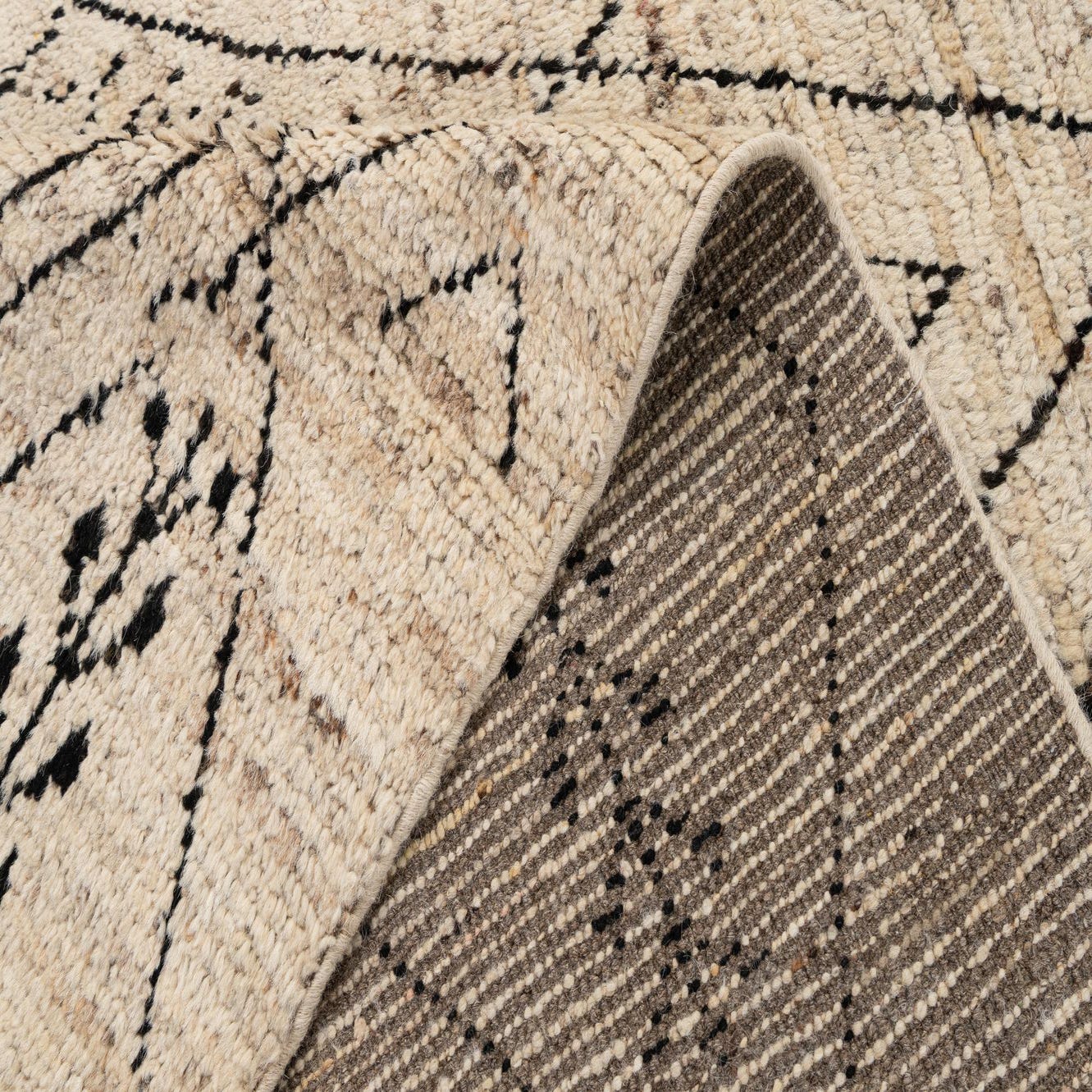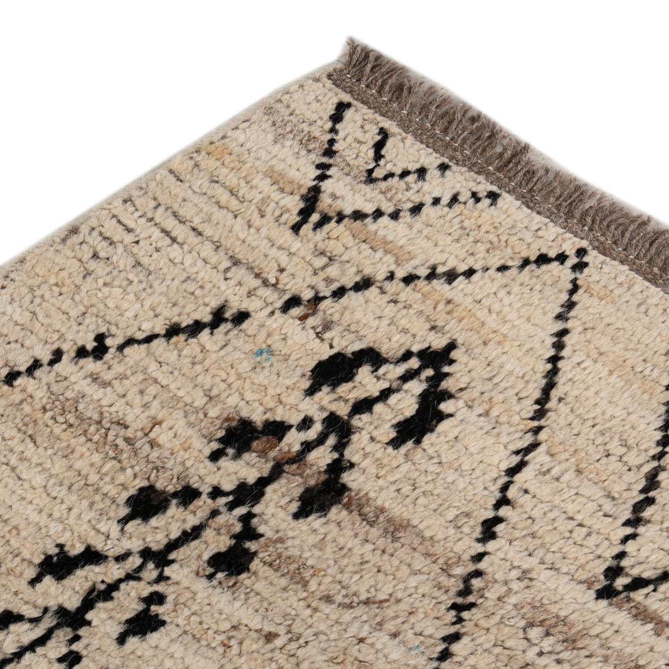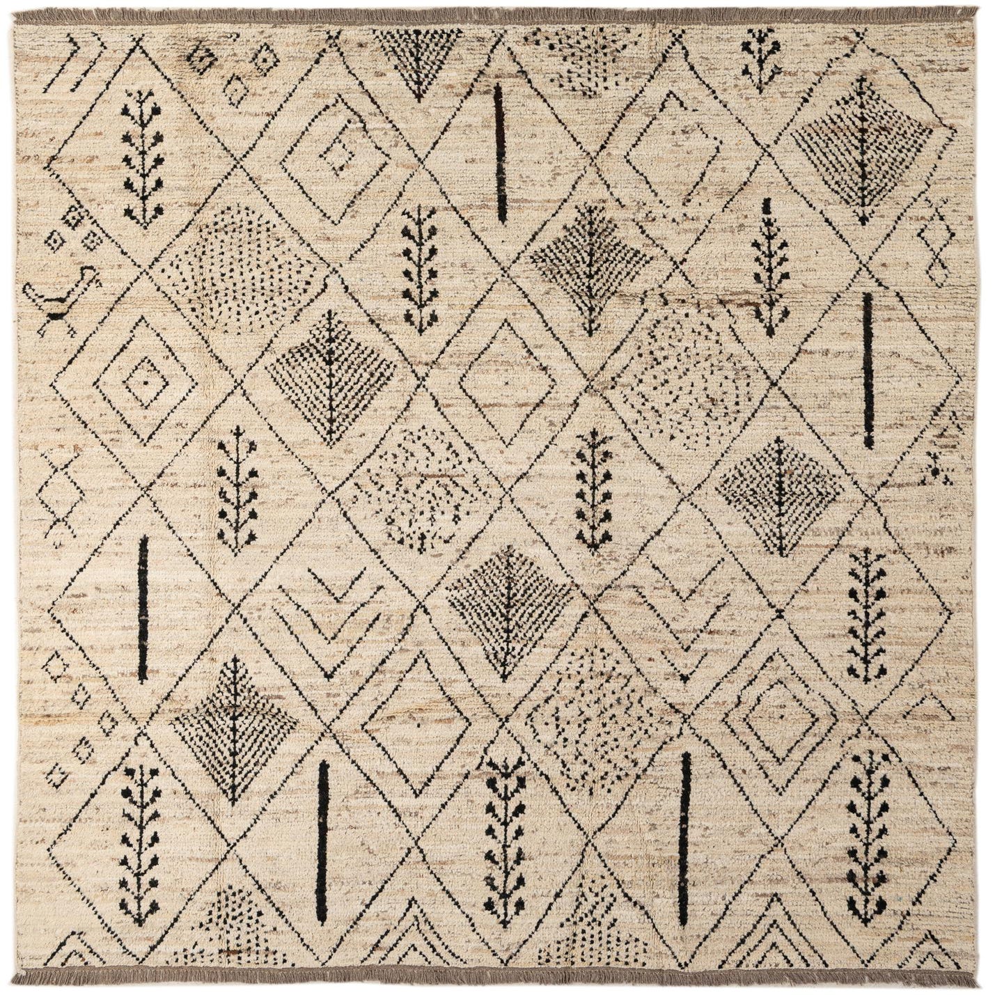 Primary color is Cream. Colors in this rug include: Cream, Black, Brown.