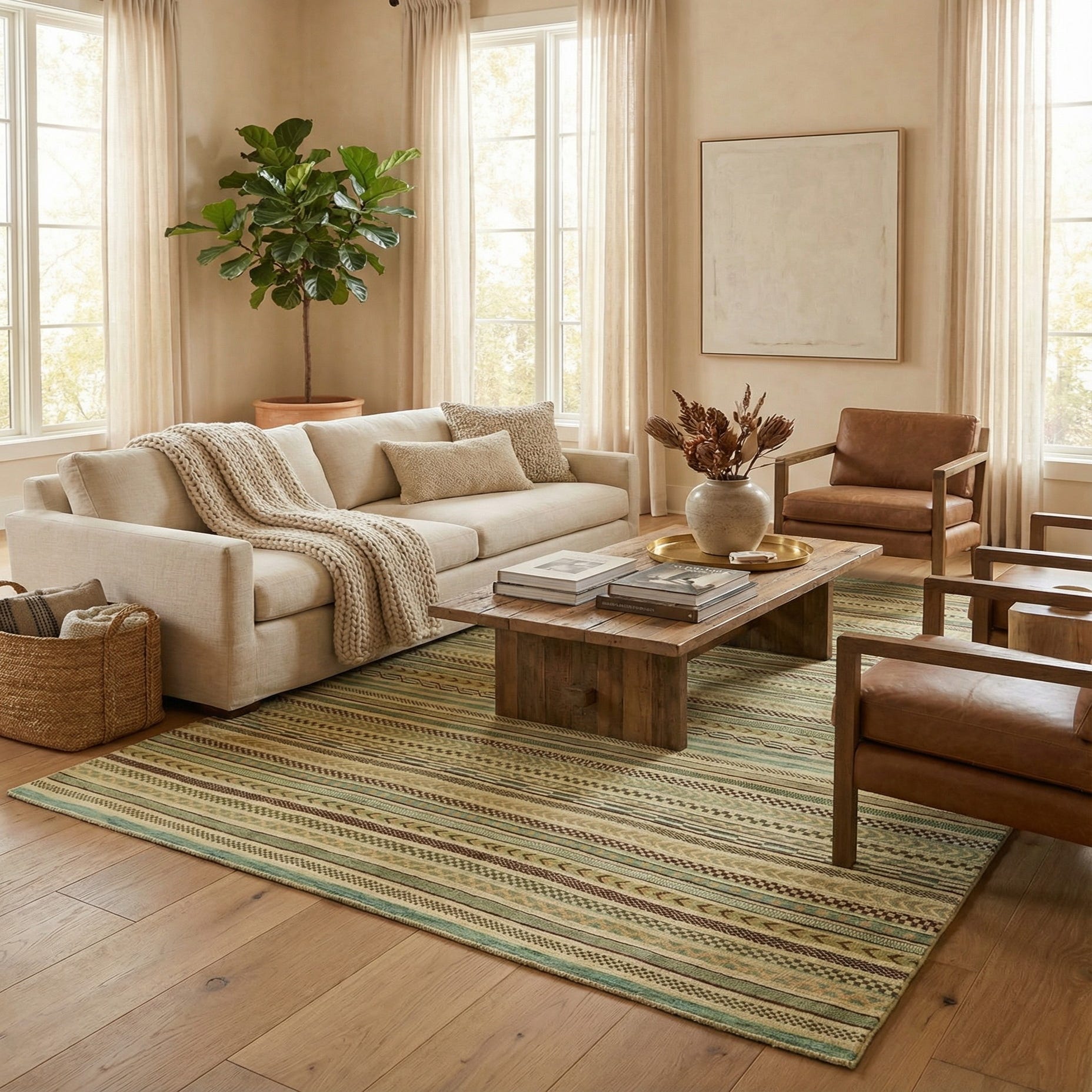 Primary color is Cream. Colors in this rug include: Cream, Beige, Black, Blue, Brown, Green, Navy Blue, Red.