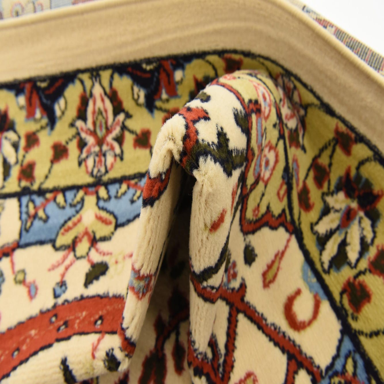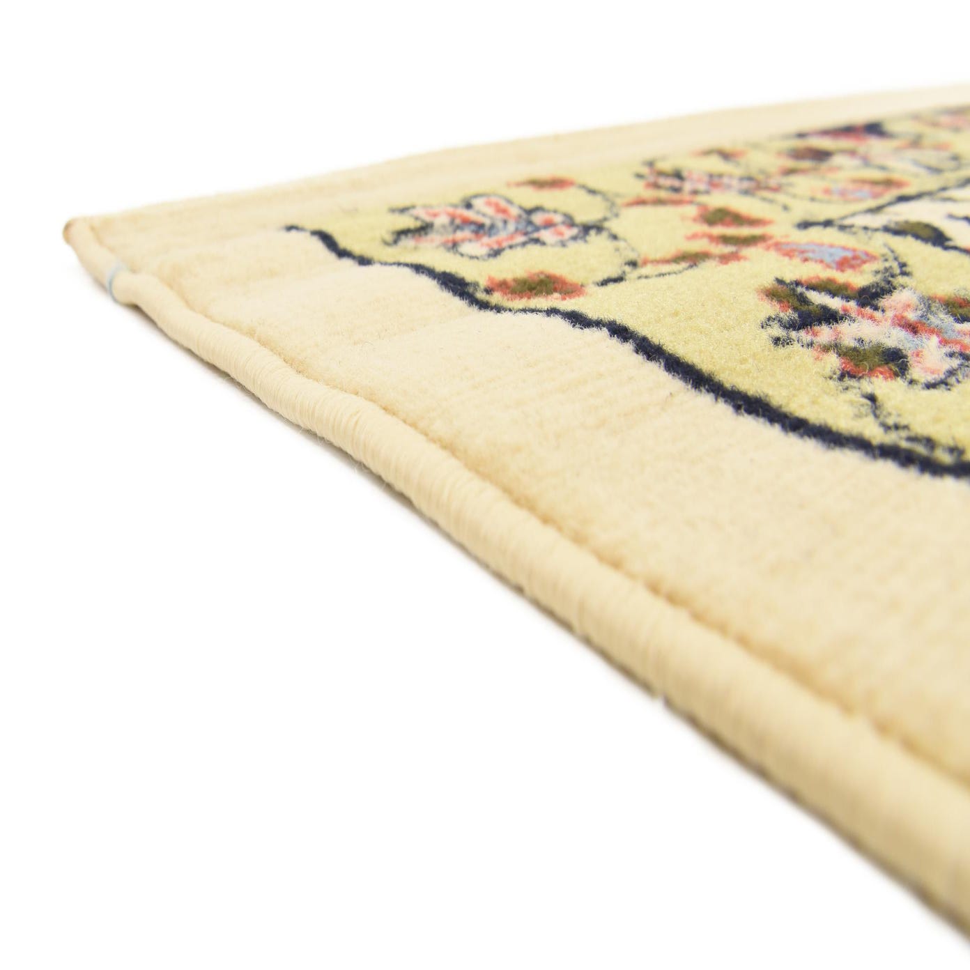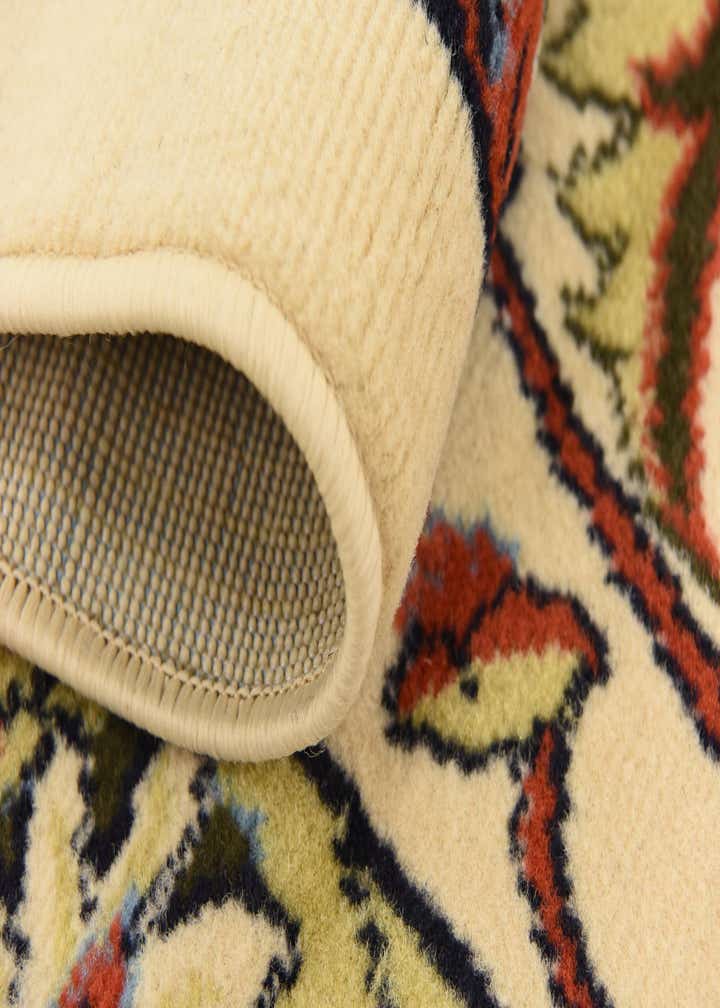 Primary color is Cream. Colors in this rug include: Cream, Black, Blue, Light Green, Red, Tan, Navy Blue.