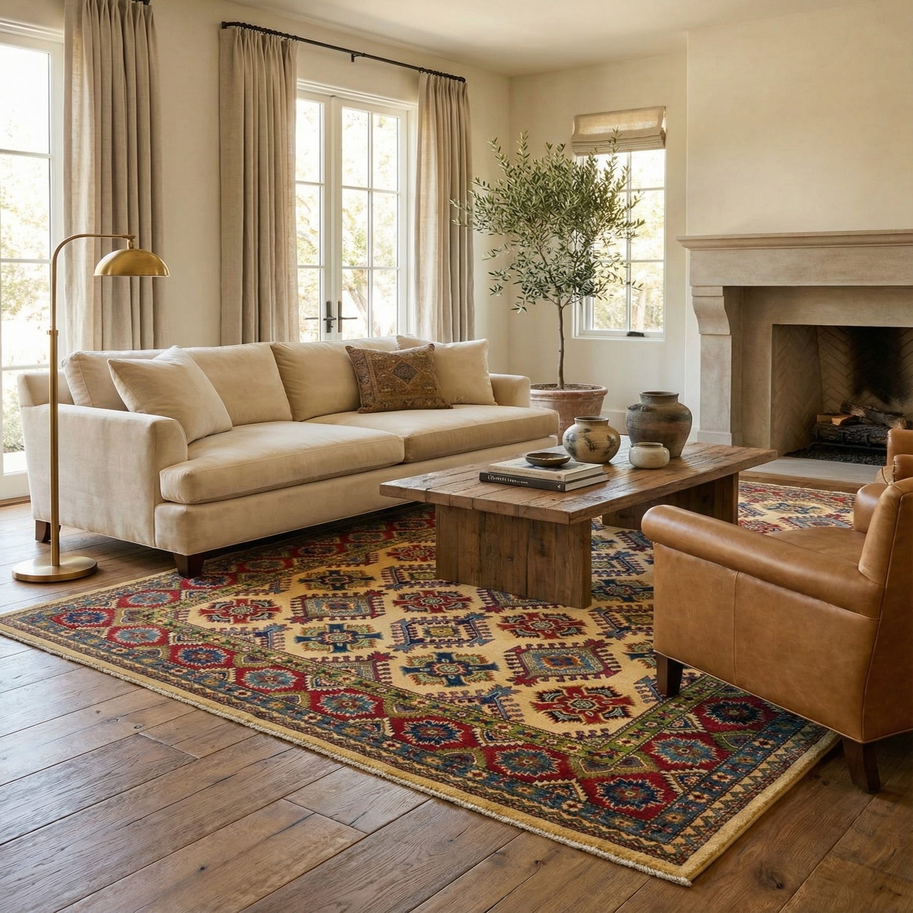 6' 7 x 9' 9 Hand Knotted Kazak Rug