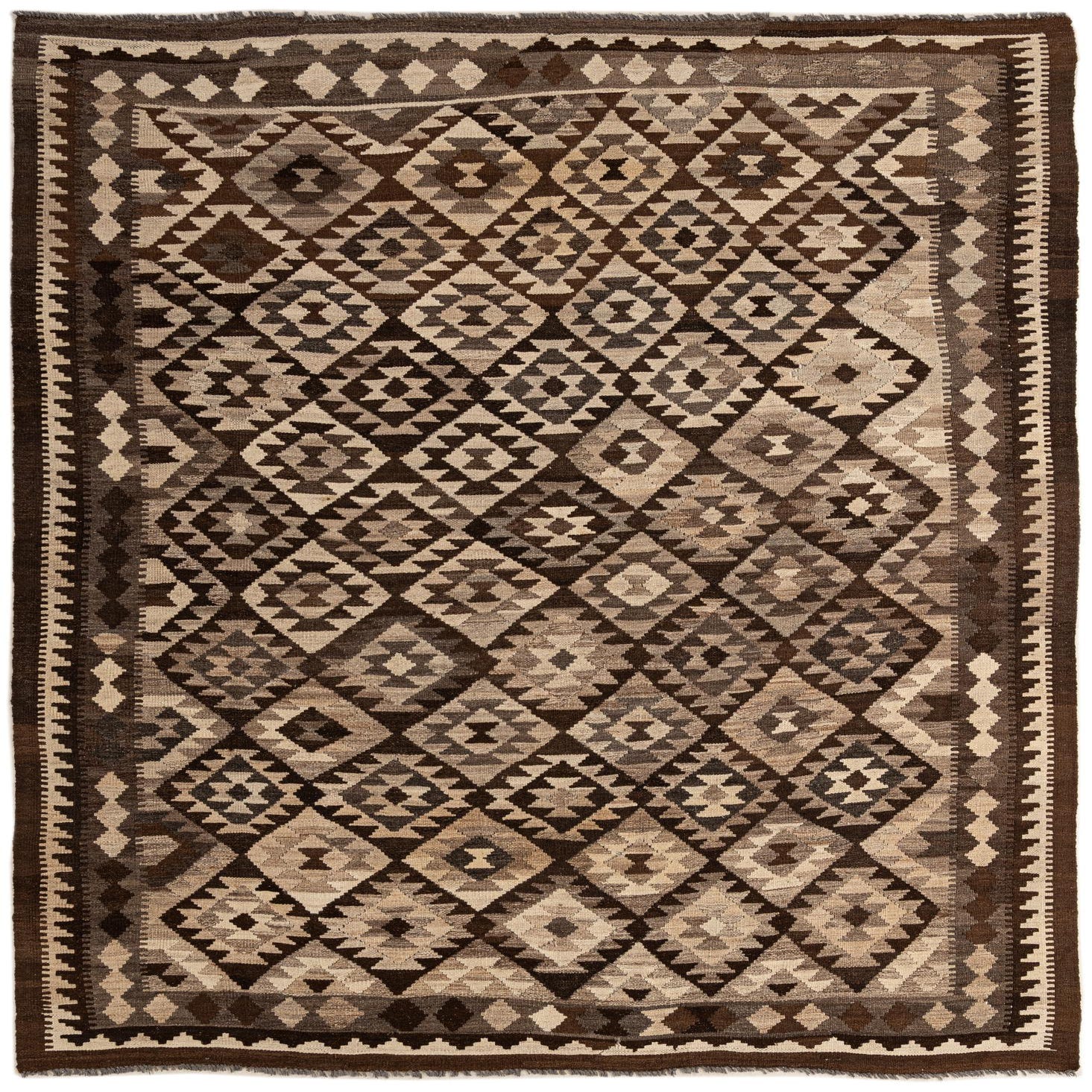 6' 7 x 8' 11 Hand Woven Kilim Maymana Wool Rug