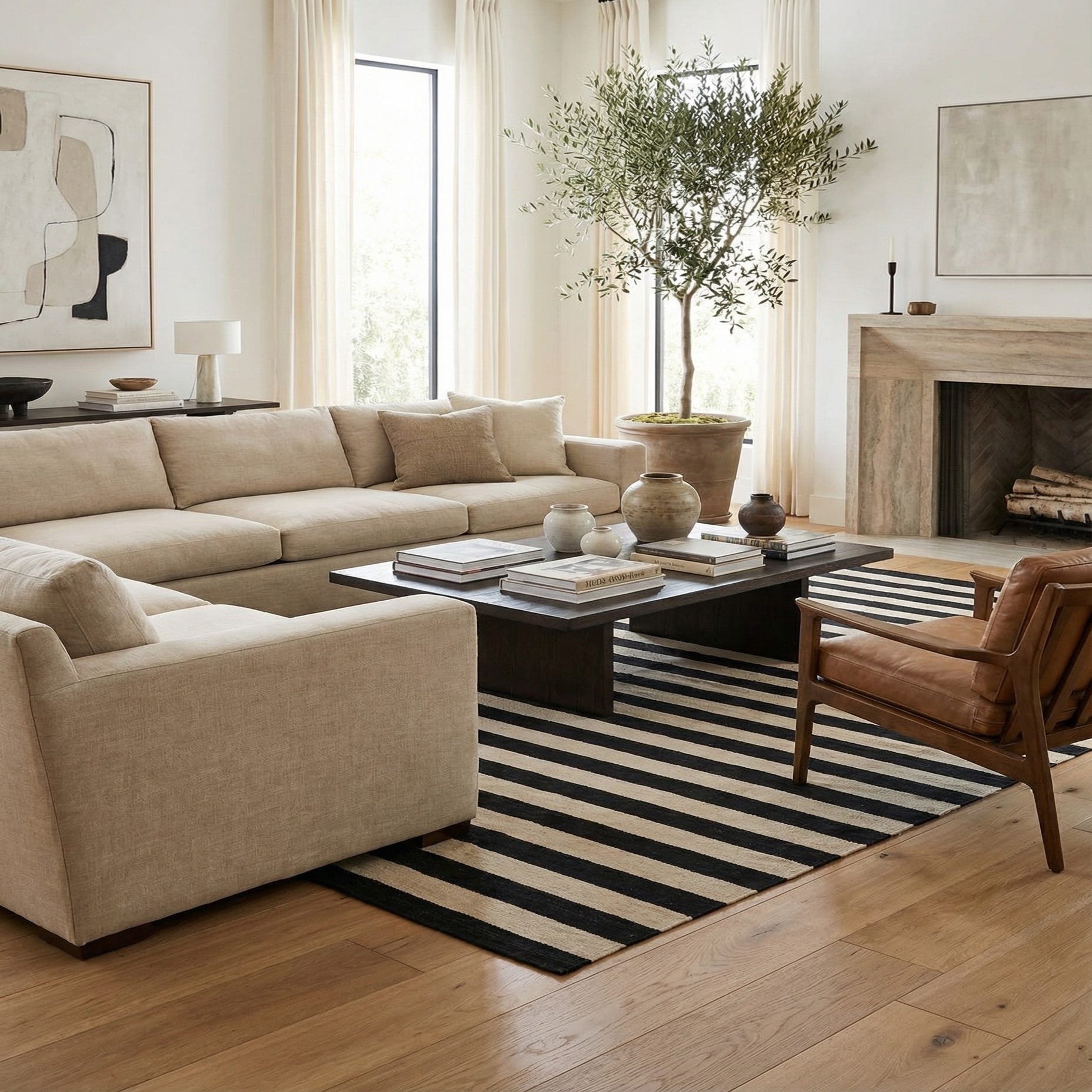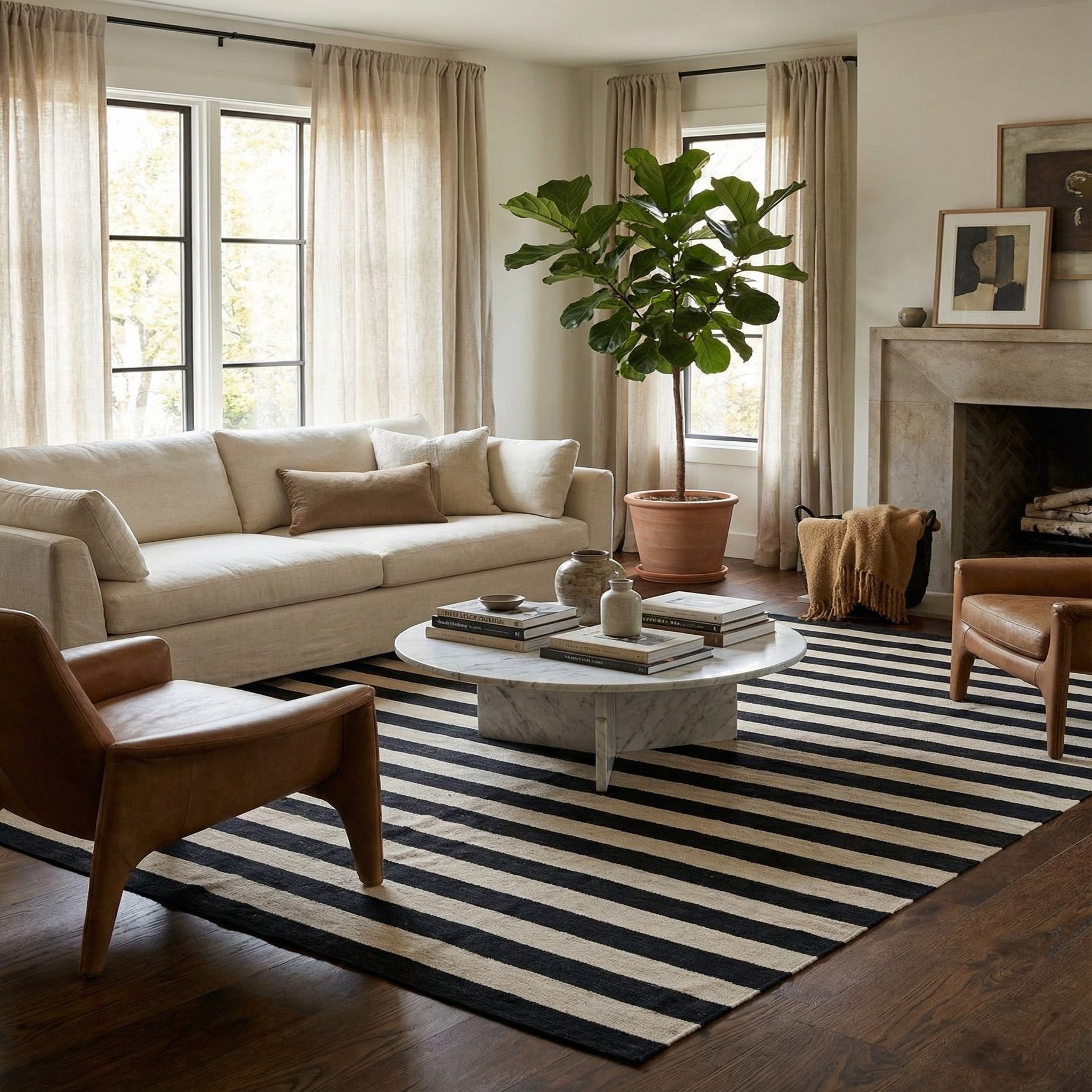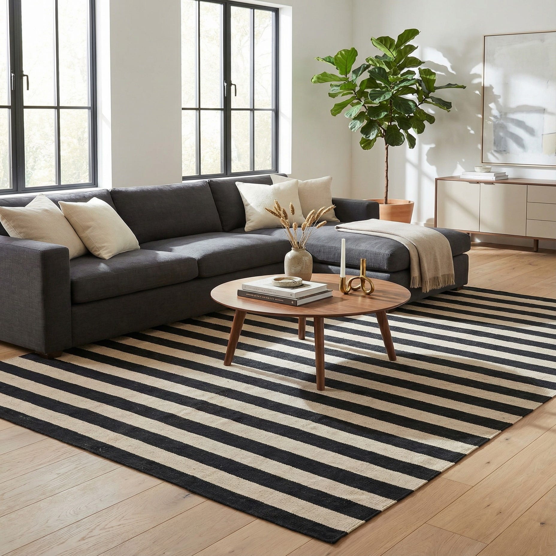 Primary color is Cream. Colors in this rug include: Cream, Black.
