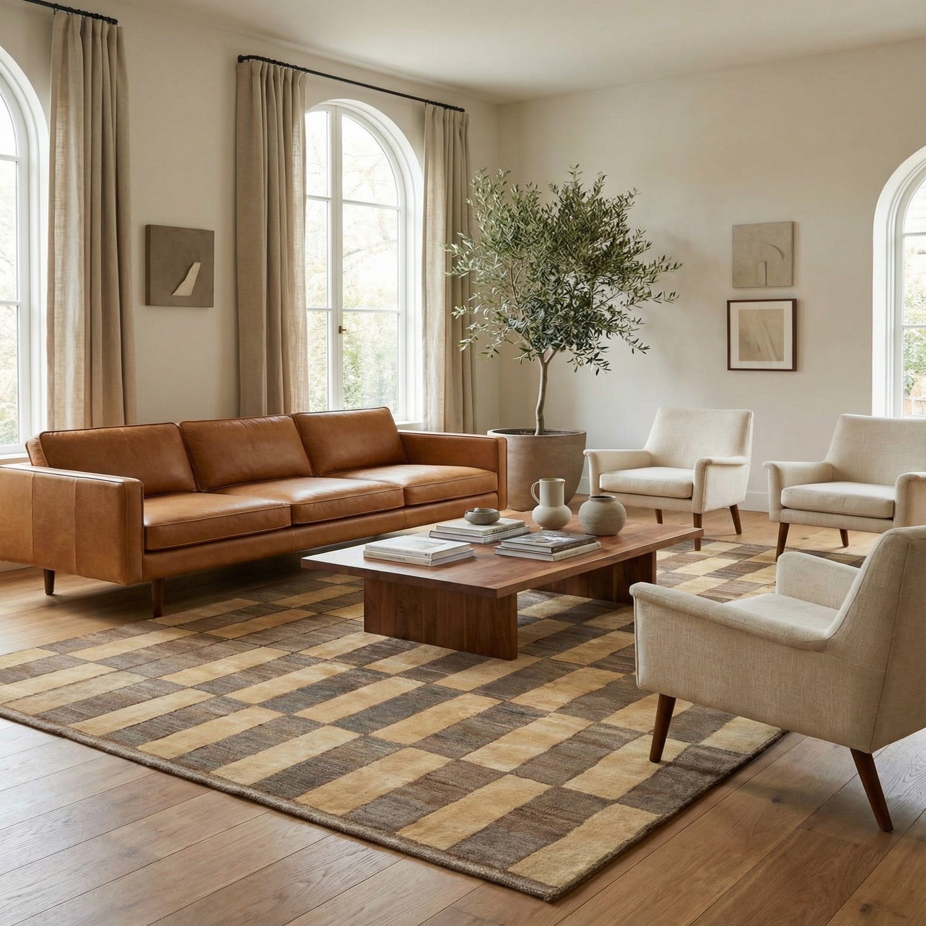 Primary color is Cream. Colors in this rug include: Cream, Brown.