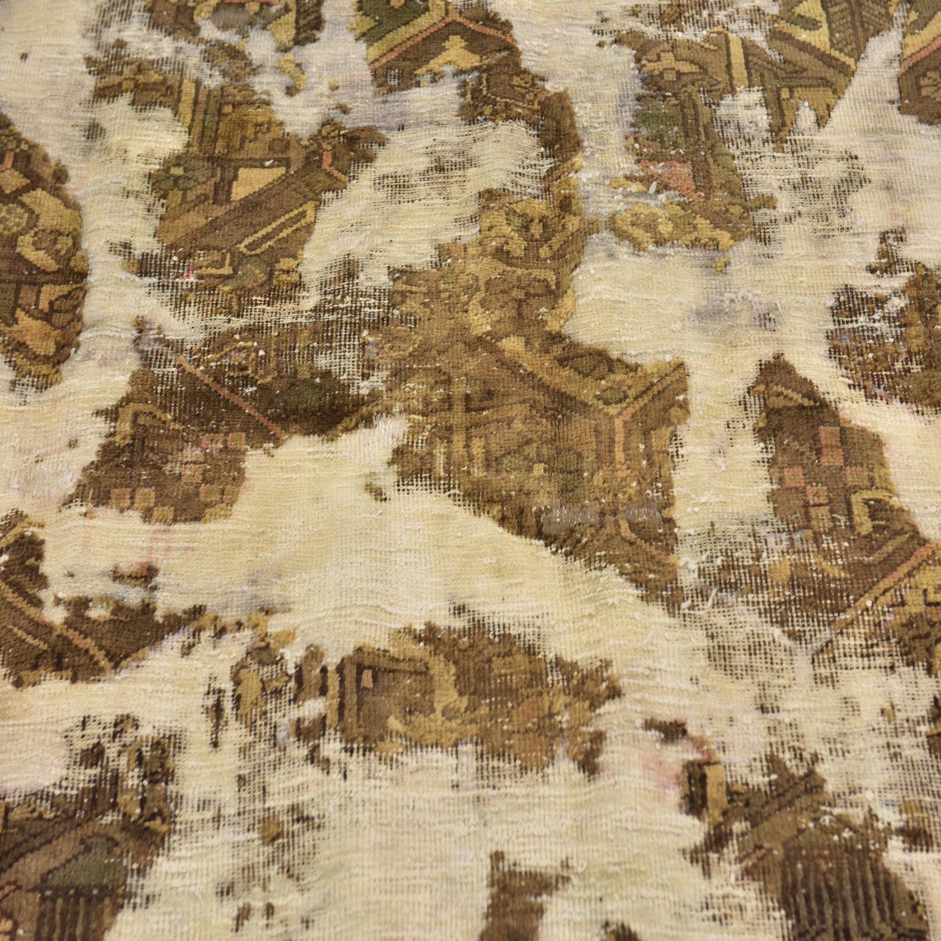 This Persian Ultra Vintage rug is an antique Persian Rug that has been washed, over-dyed, and then shaved down to a low pile. Look at the detail pictures to fully appreciate the uniqueness of this piece.