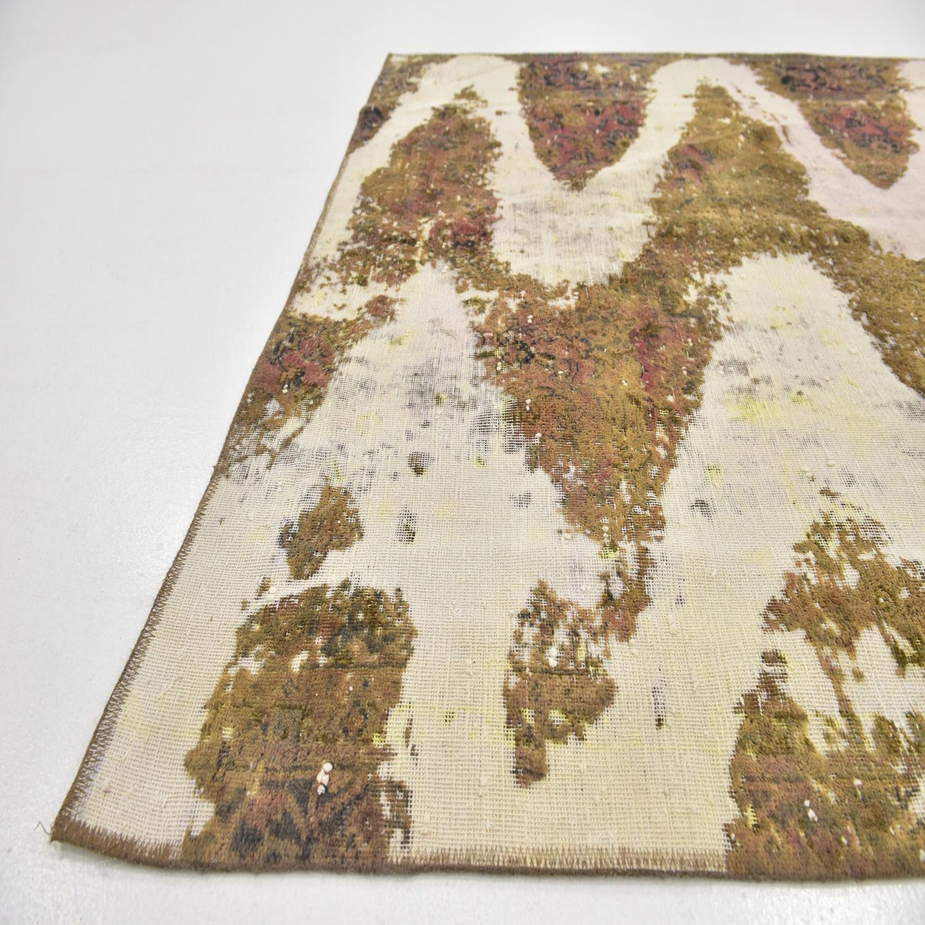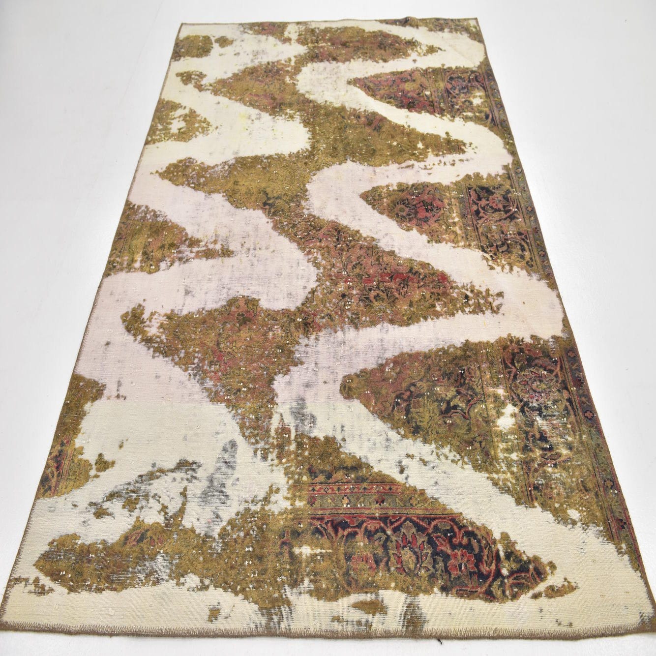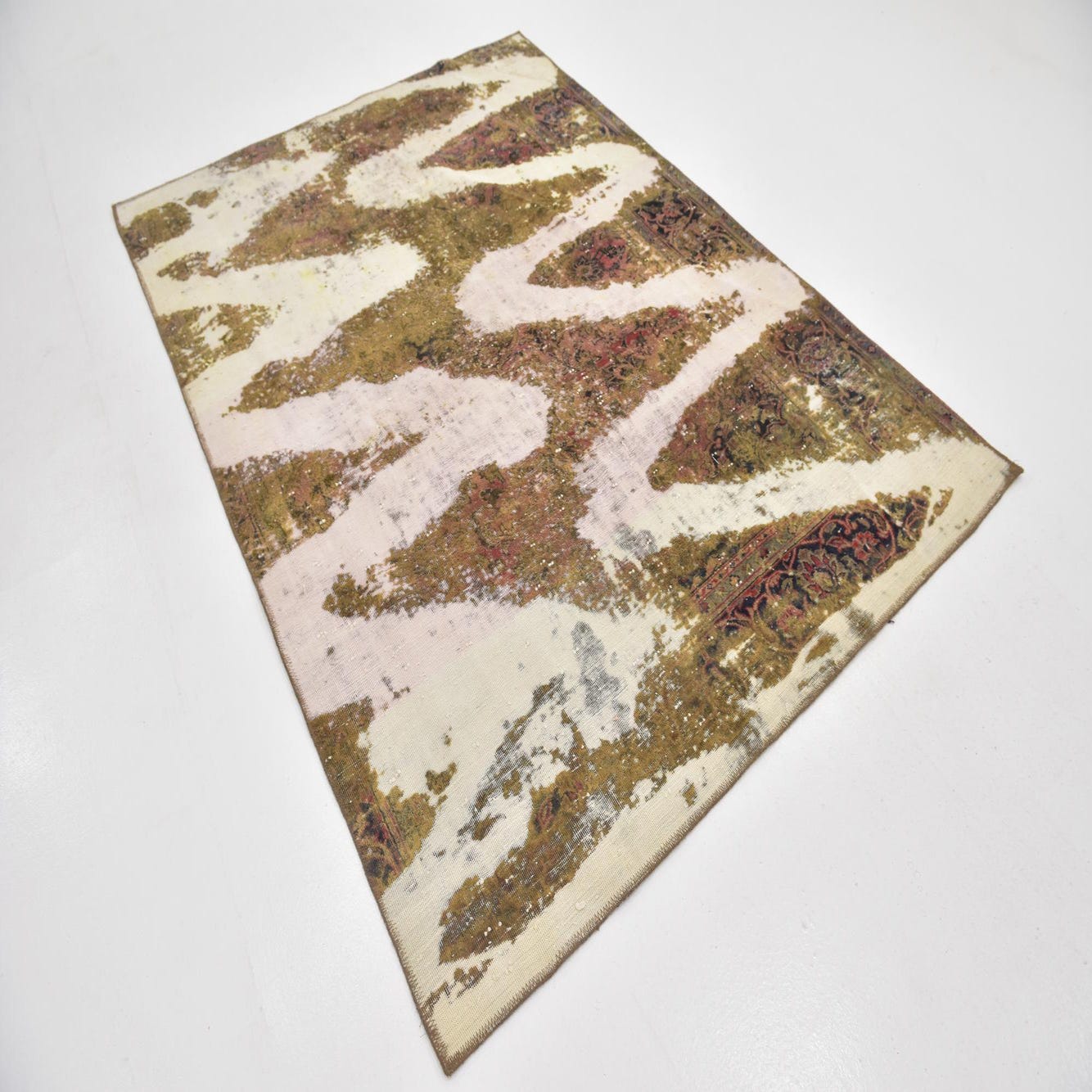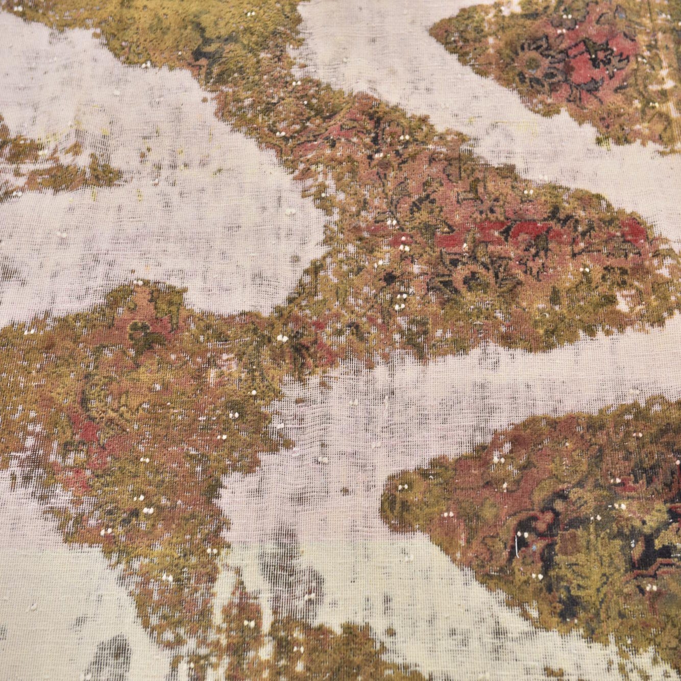 This Persian Ultra Vintage rug is an antique Persian Rug that has been washed, over-dyed, and then shaved down to a low pile. Look at the detail pictures to fully appreciate the uniqueness of this piece.