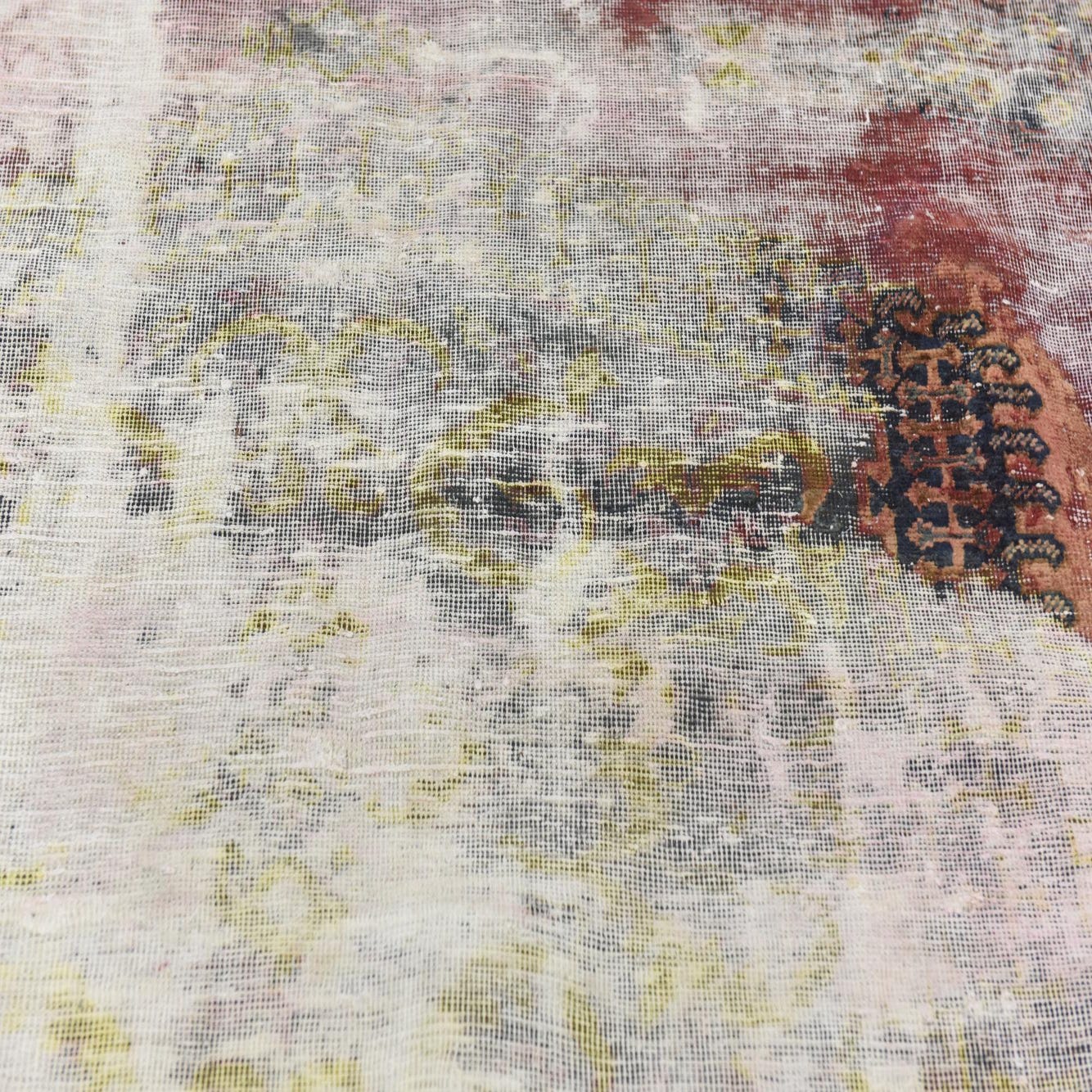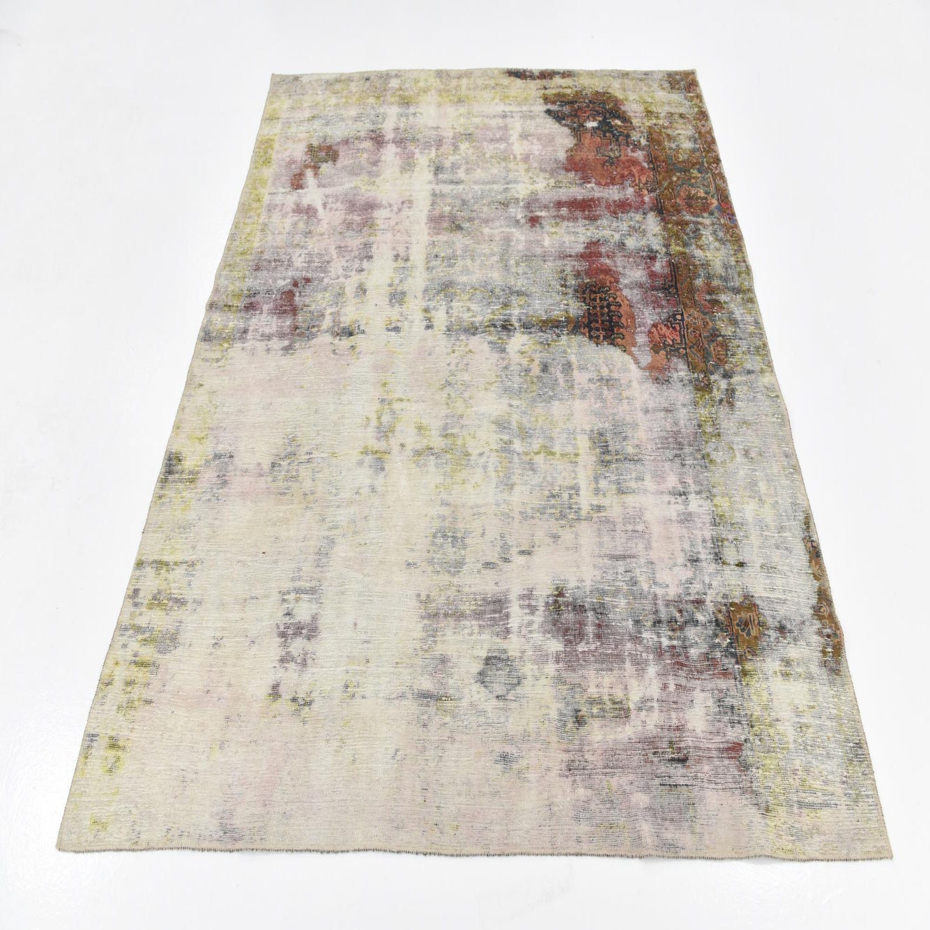 This Persian Ultra Vintage rug is an antique Persian Rug that has been washed, over-dyed, and then shaved down to a low pile. Look at the detail pictures to fully appreciate the uniqueness of this piece.