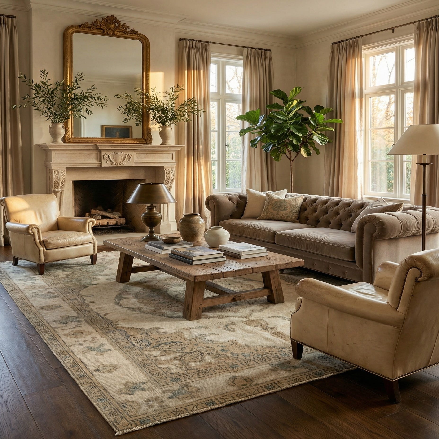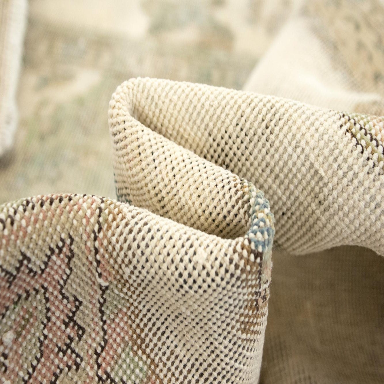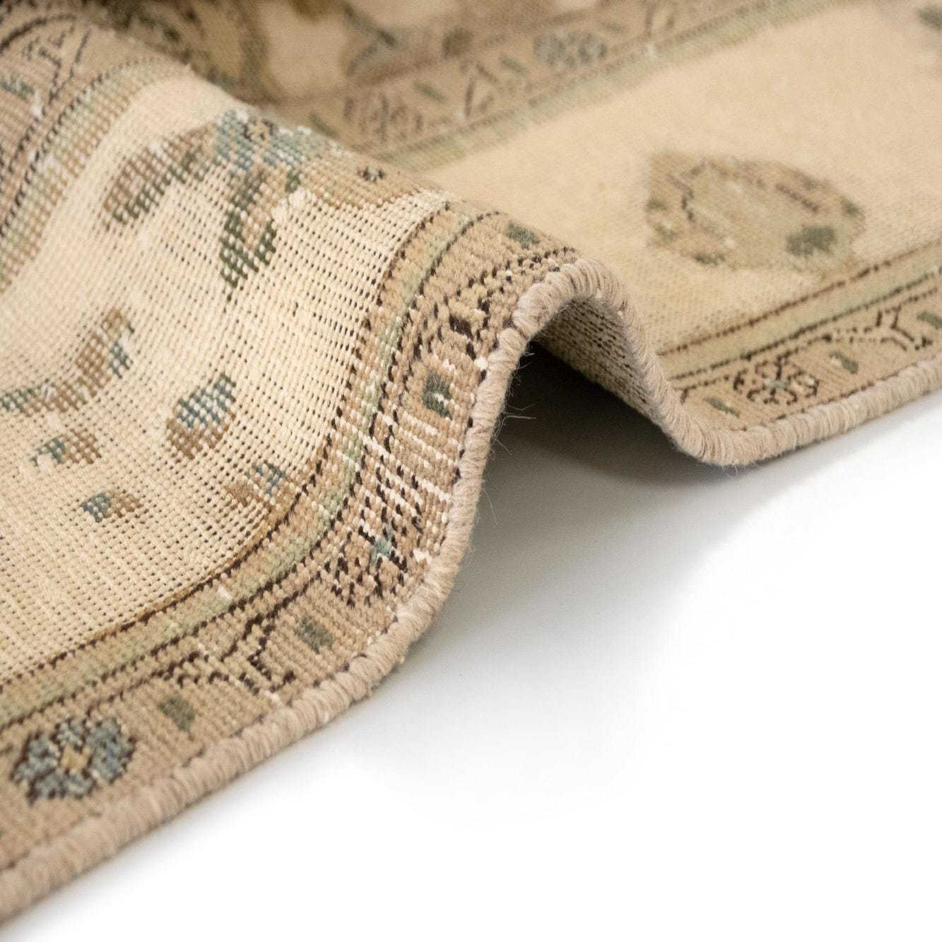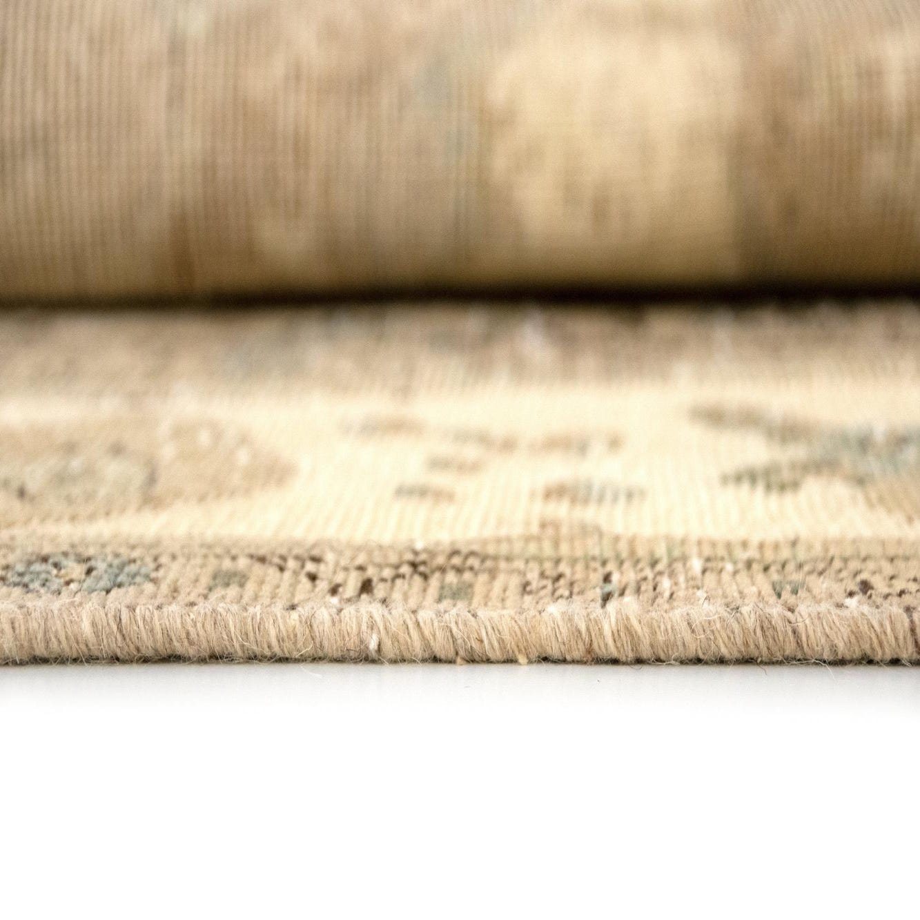 Primary color is Cream. Colors in this rug include: Cream, Beige, Brown, Green.