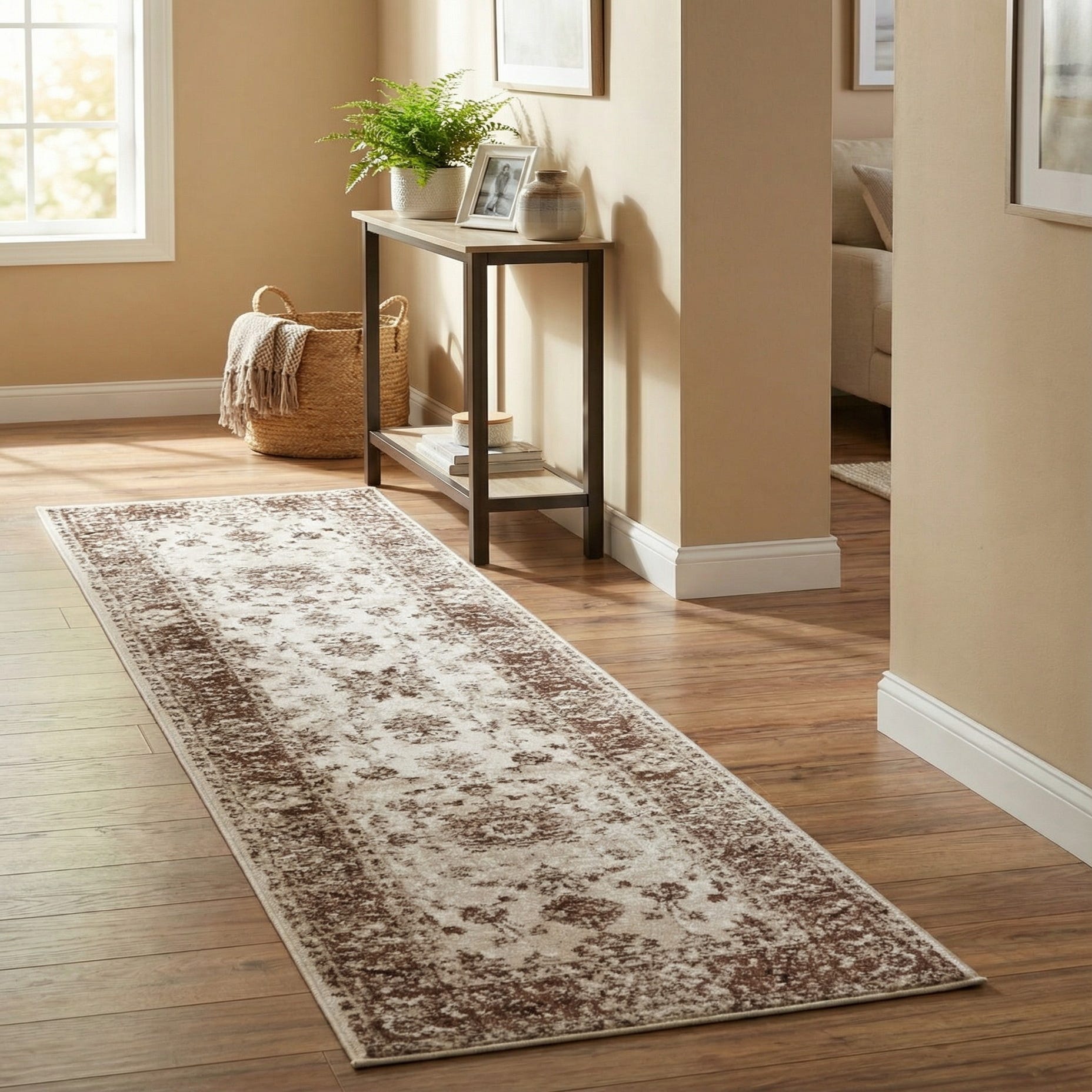 Primary color is Cream. Colors in this rug include: Cream, Beige, Brown, Light Brown.