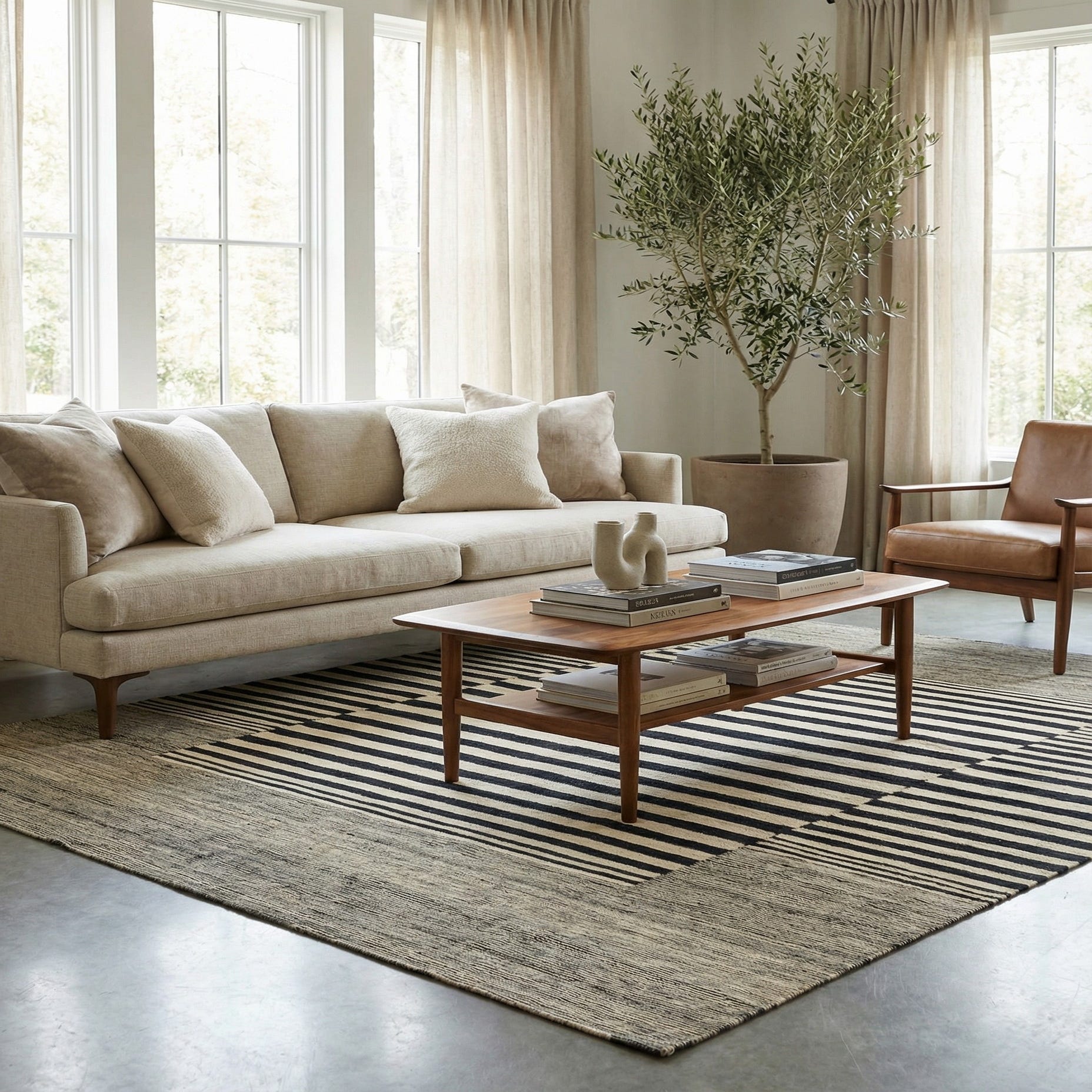 Primary color is Cream. Colors in this rug include: Cream, Beige, Black.