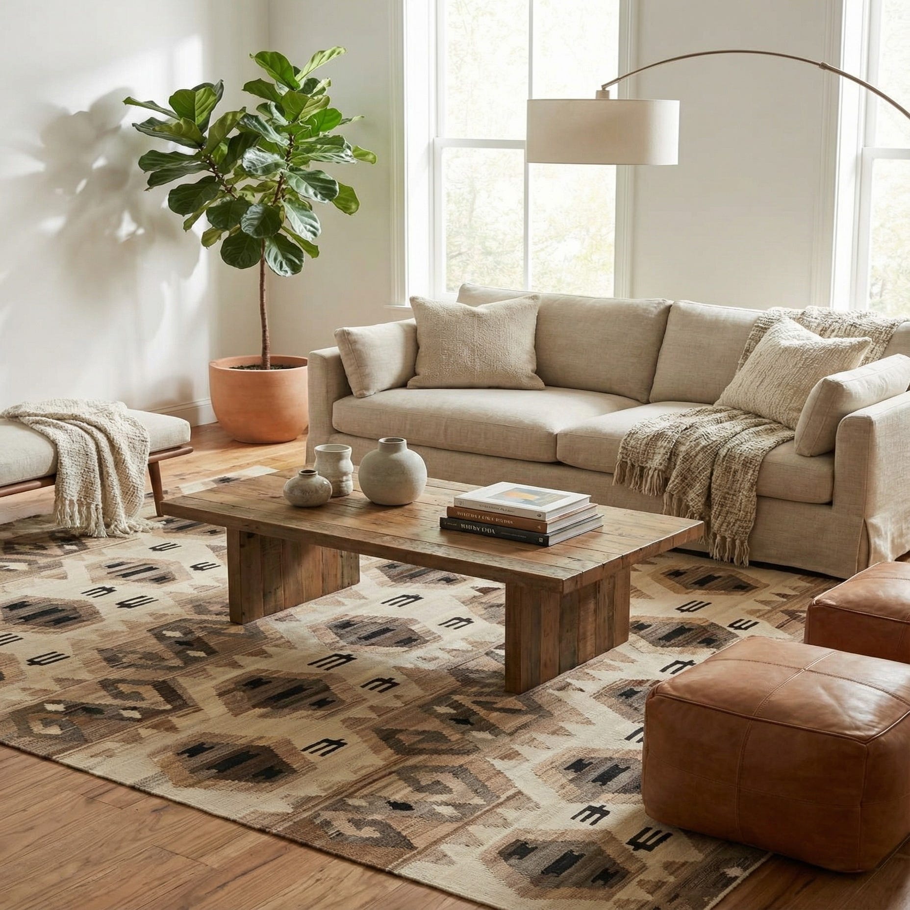 6' x 7' 3 Hand Woven Kilim Modern Wool Square Rug