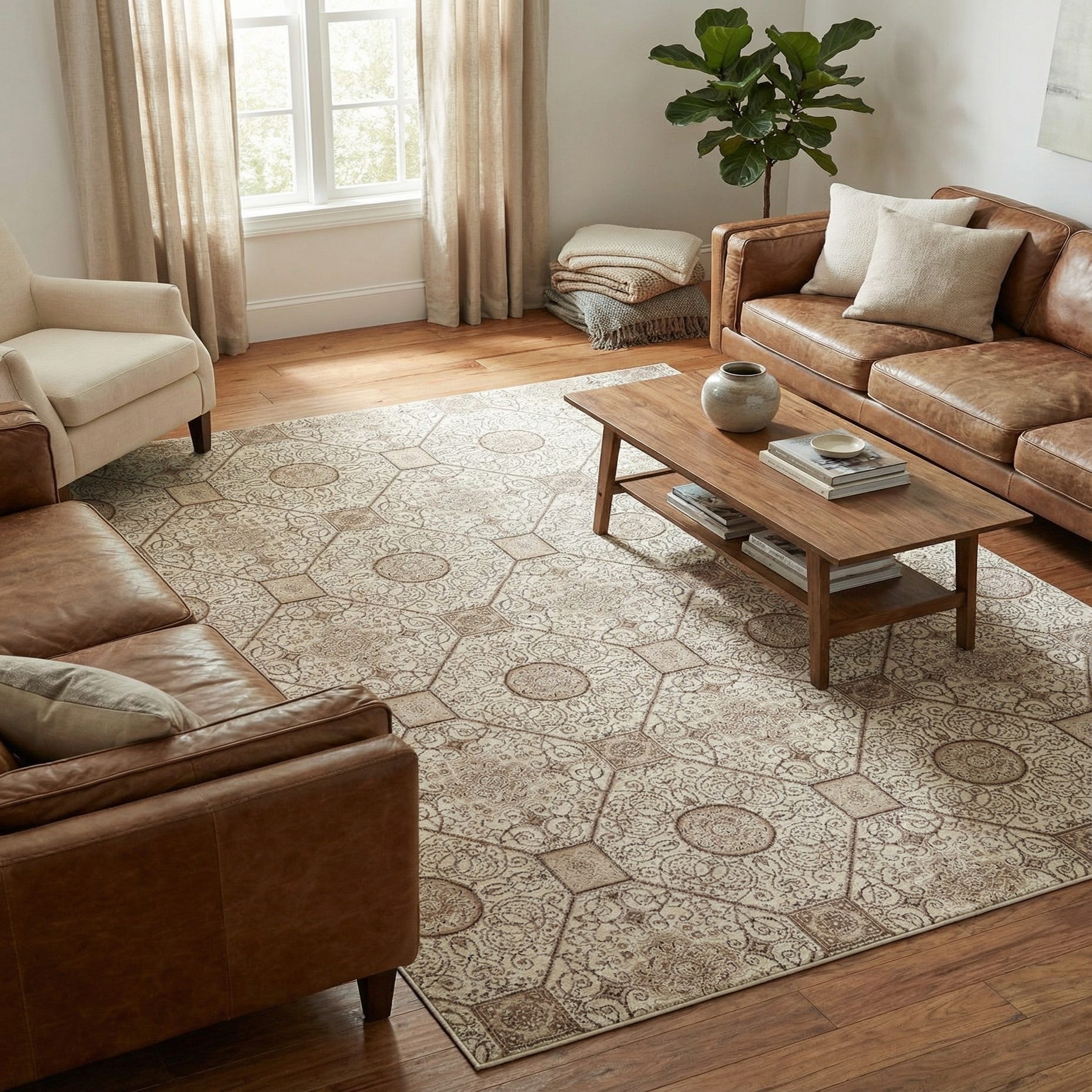 Primary color is Cream. Colors in this rug include: Cream, Brown, Light Brown.