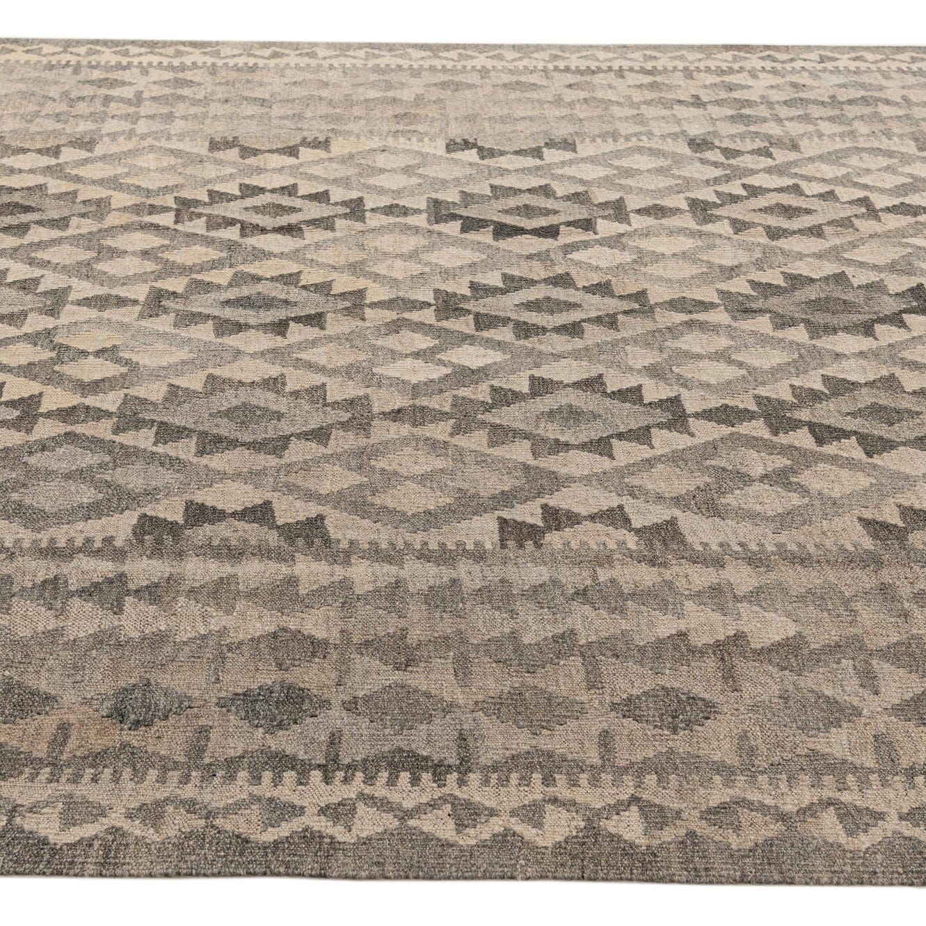 6' 9 x 9' 7 Hand Woven Kilim Maymana Wool Rug