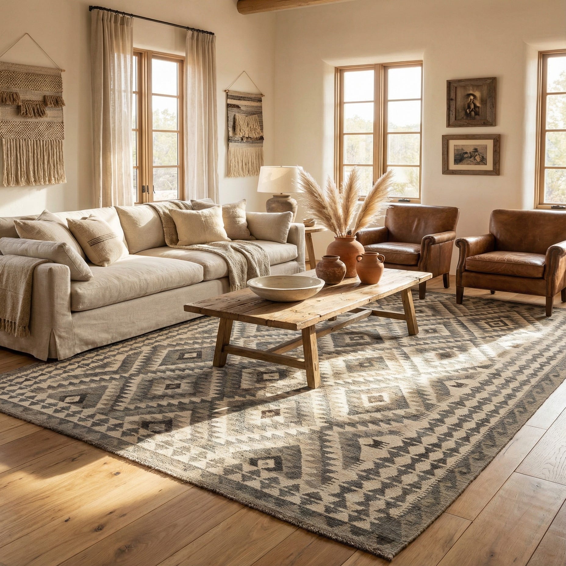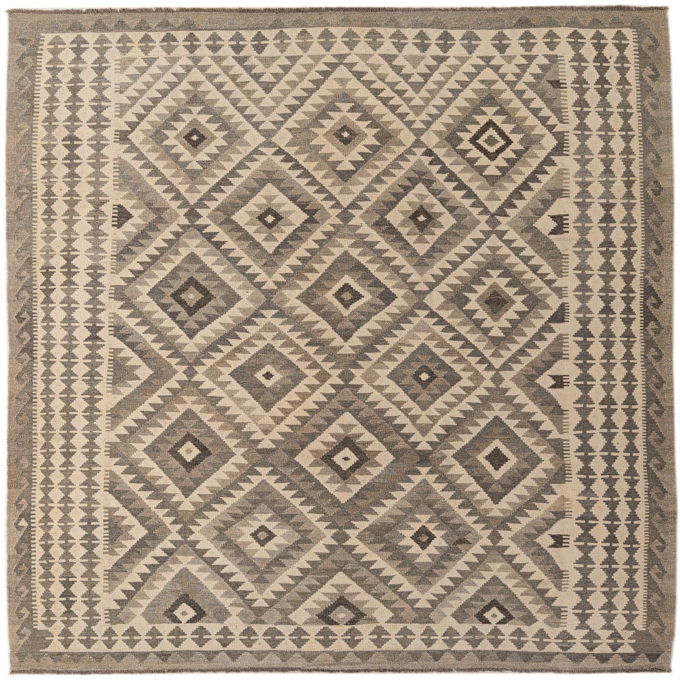 6' 8 x 9' 7 Hand Woven Kilim Maymana Wool Rug