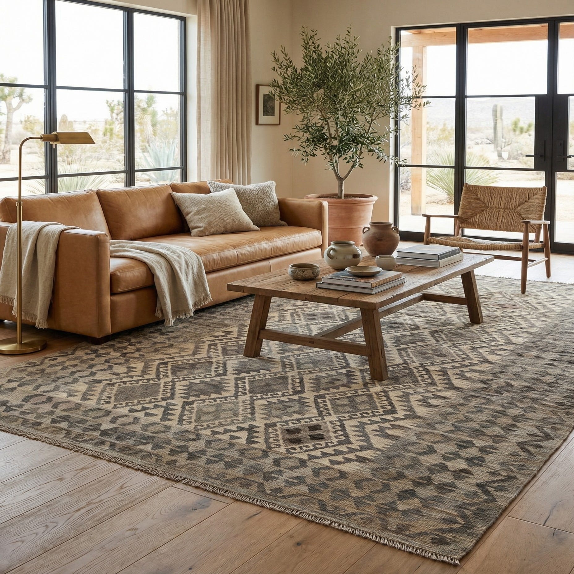 6' 8 x 9' 8 Hand Woven Kilim Maymana Wool Rug