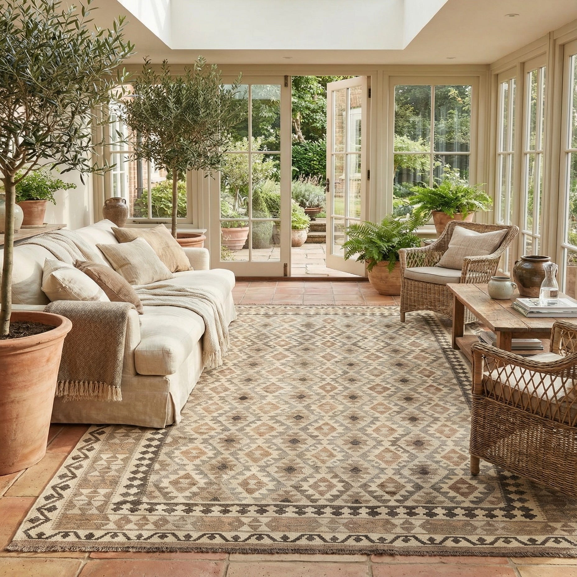 Detail image of 6' 9 x 9' 11  Hand Woven Kilim Maymana Wool Rug