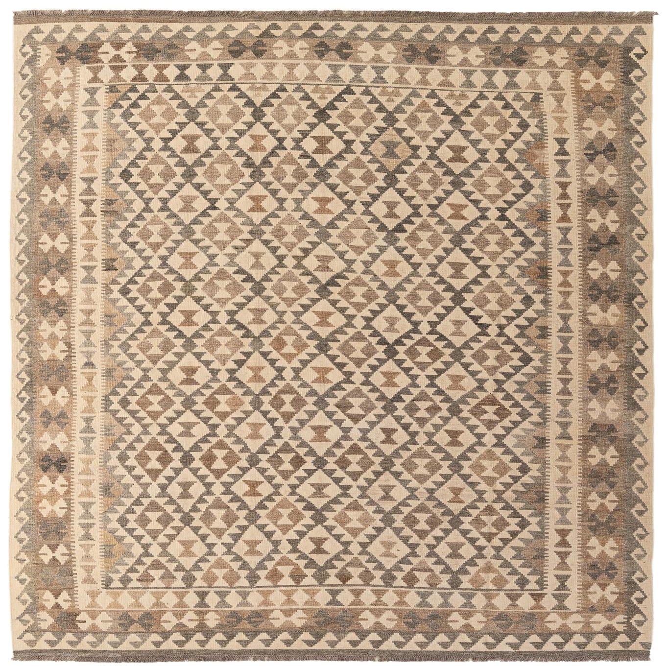 Primary color is Cream. Colors in this rug include: Cream, Beige, Brown, Gray.