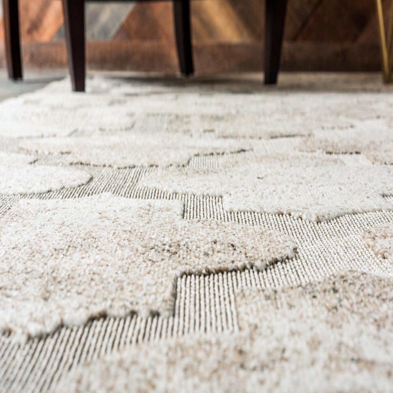 Primary color is Cream. Colors in this rug include: Cream, Brown, Light Brown.