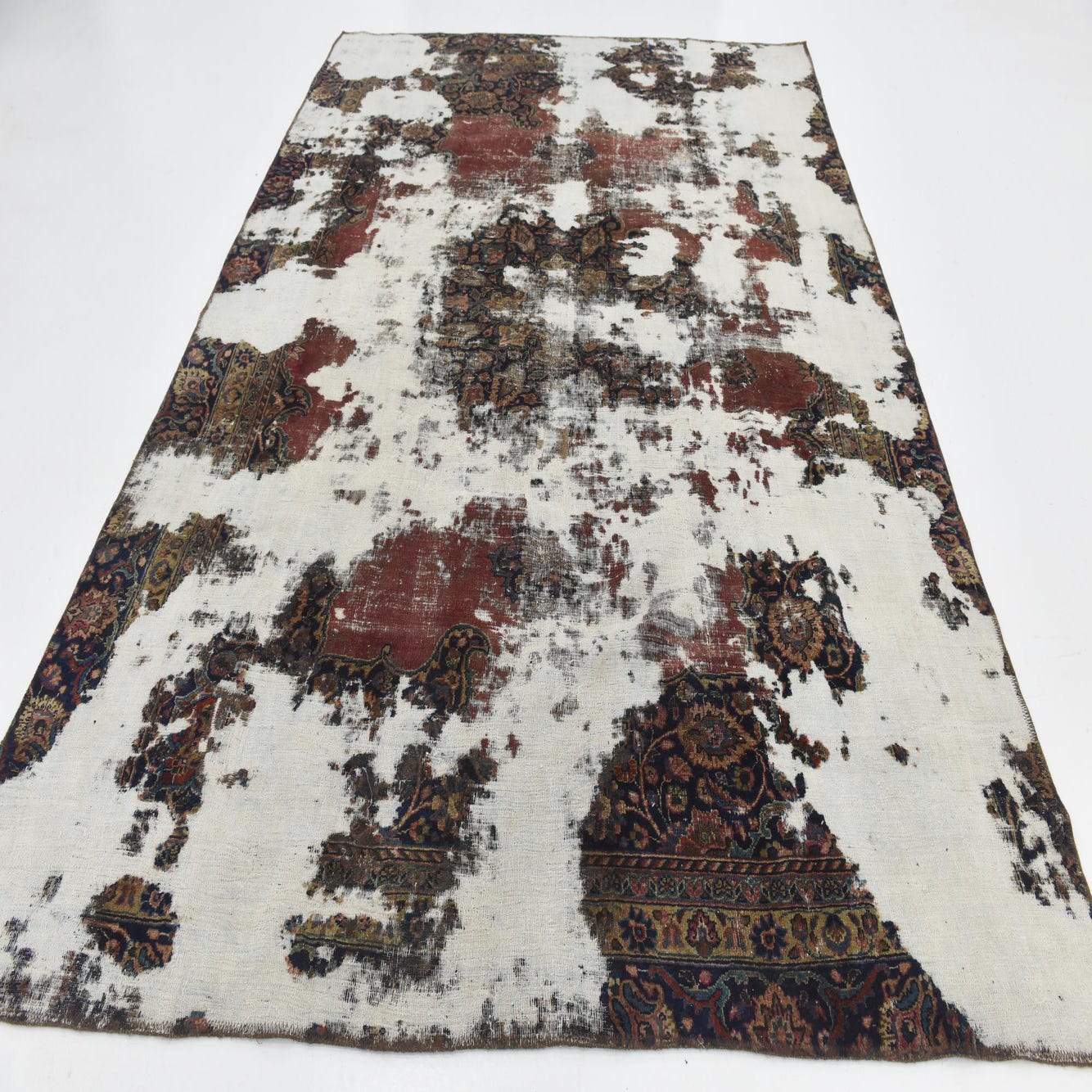 This Persian Ultra Vintage rug is an antique Persian Rug that has been washed, over-dyed, and then shaved down to a low pile. Look at the detail pictures to fully appreciate the uniqueness of this piece.