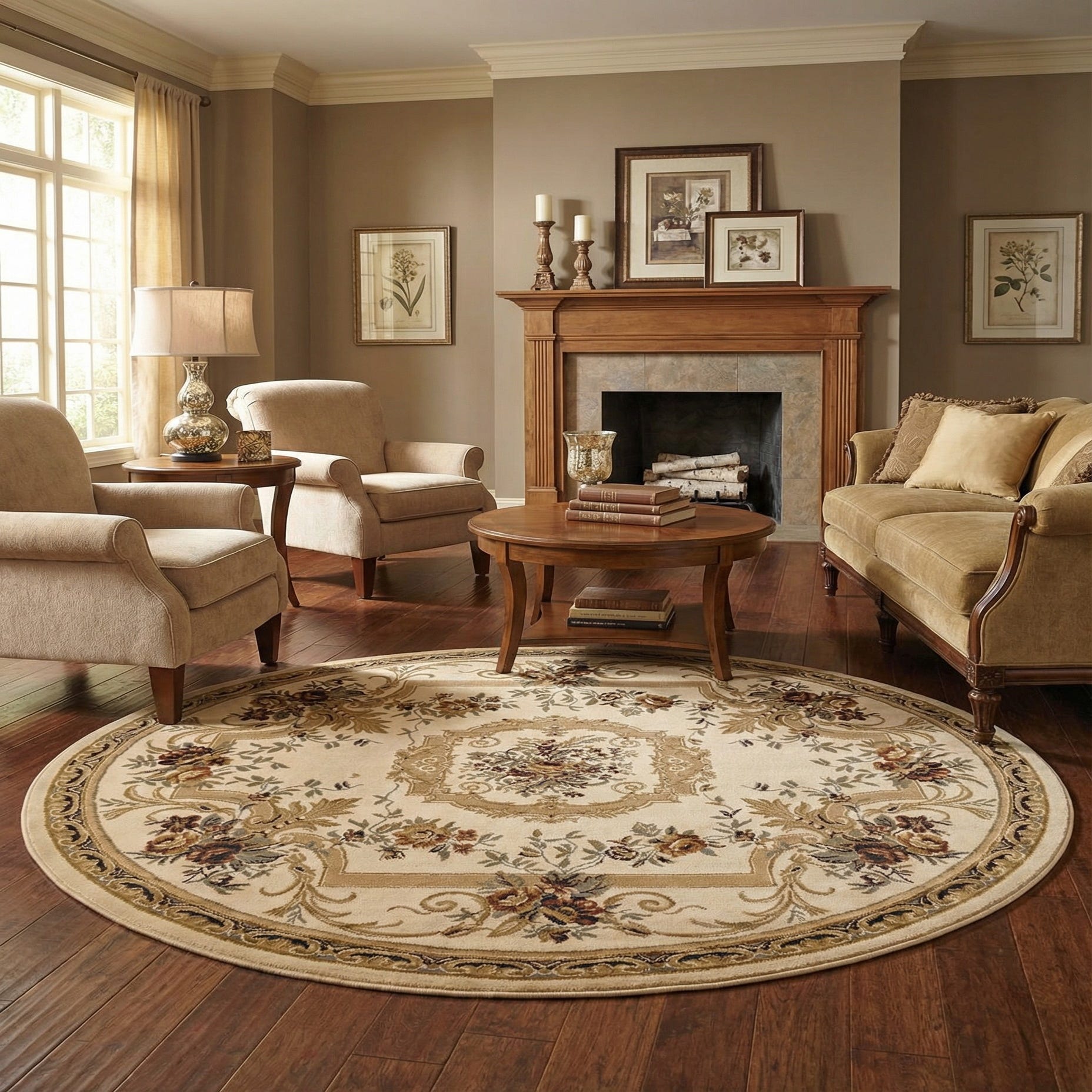 7' 10 x 7' 10 Classic Aubusson Round Rug