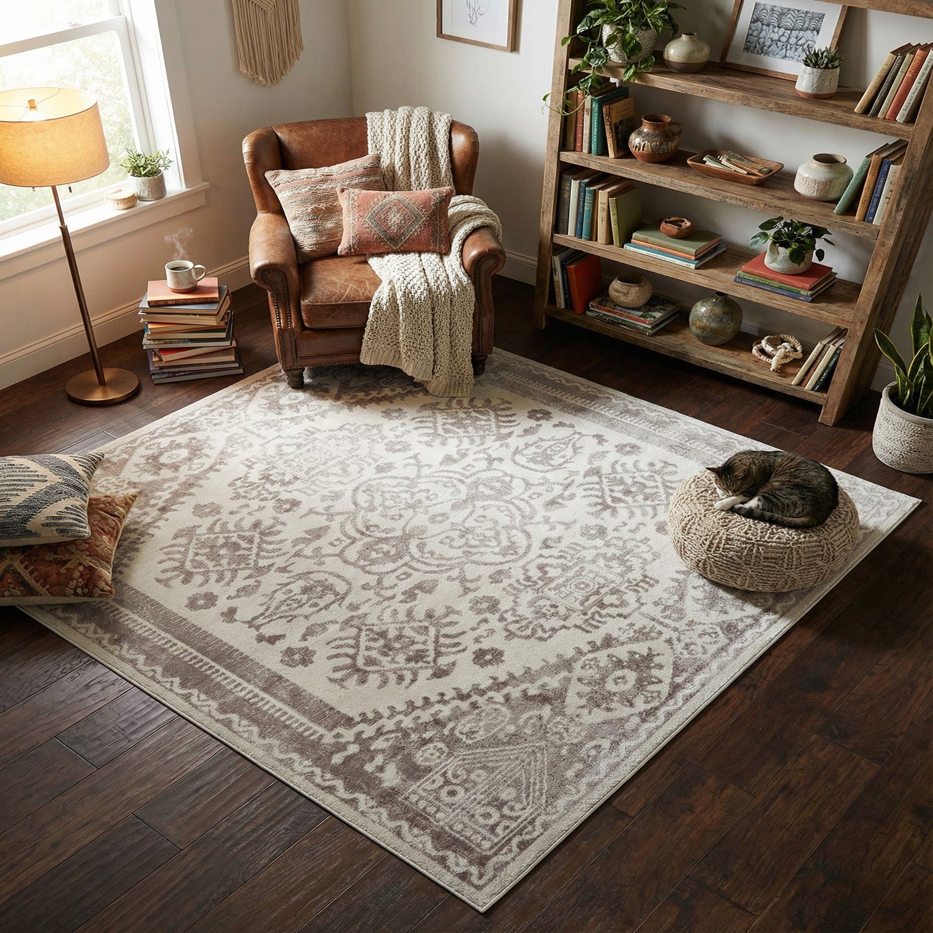 Primary color is Cream. Colors in this rug include: Cream, Ivory.
