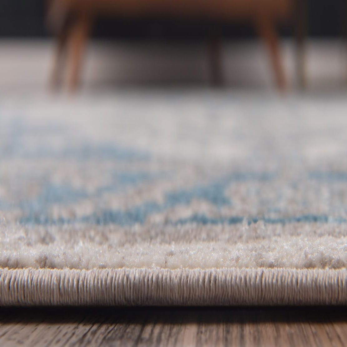 Primary color is Cream. Colors in this rug include: Cream, Gray, Light Blue.