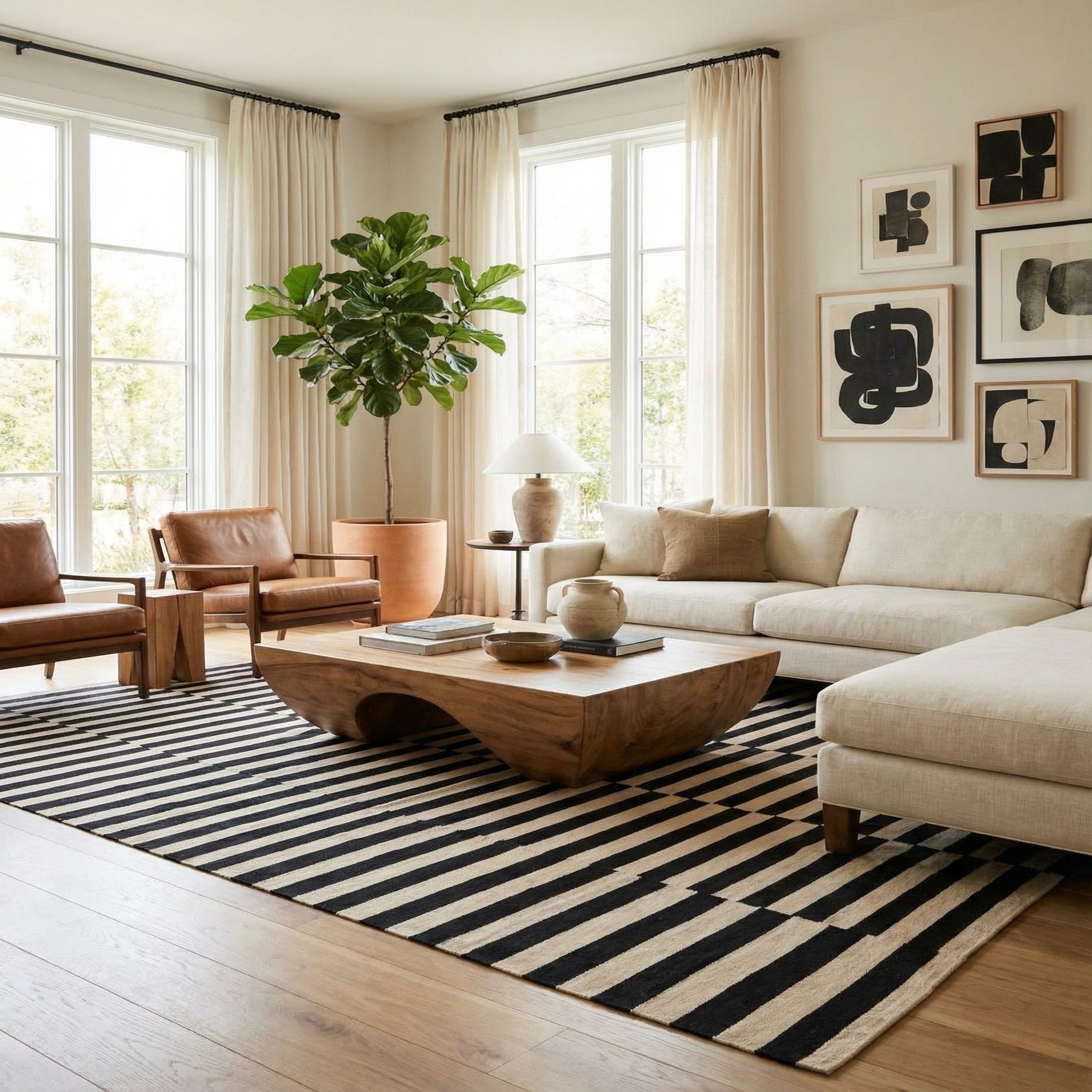 Primary color is Cream. Colors in this rug include: Cream, Black.